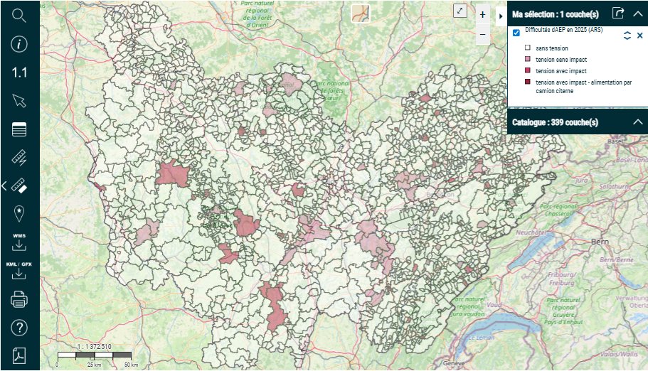 Le niveau de tension maximal observé sur la ressource en eau (avec impacts quantitatifs ou qualitatifs : interconnexions, recours à l'alimentation par camion citernes...) est renseigné sur l'ORISK depuis 2018 d'après les données de l'ARS. En 2025, 10…