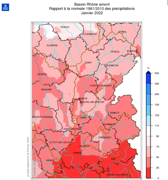 2022 débute sur un gros déficit pluviométrique généralisé : moins de 20mm de précipitations aux Rousses et à Mâcon