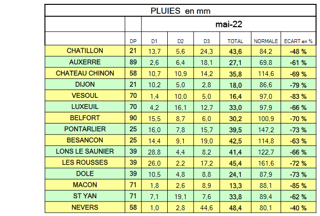Grand déficit de pluie (70%) sur l’ensemble de la région associé à des fortes chaleurs : tel est le panorama uniforme régional de ce mois de mai.