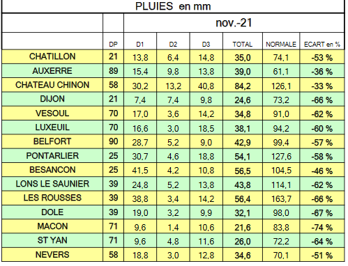 Sec et frais : Bulletin hydrologique BFC novembre 2021