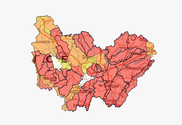 Retrouvez la mise à jour 2021 de la cartographie des arrêtés CATNAT inondation sur la région BFC !