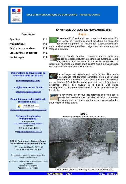 Bulletin hydrologique Bourgogne Franche-Comté novembre 2017