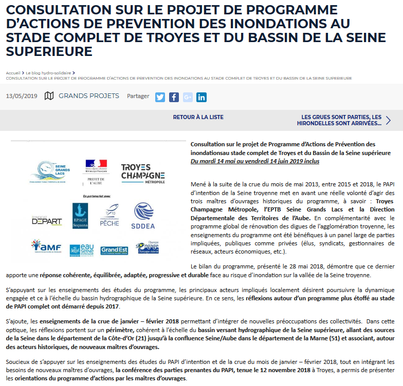 …Consultation sur le projet de programme d'actions de prévention des inondations au stade complet de Troyes et du bassin versant de la Seine supérieure