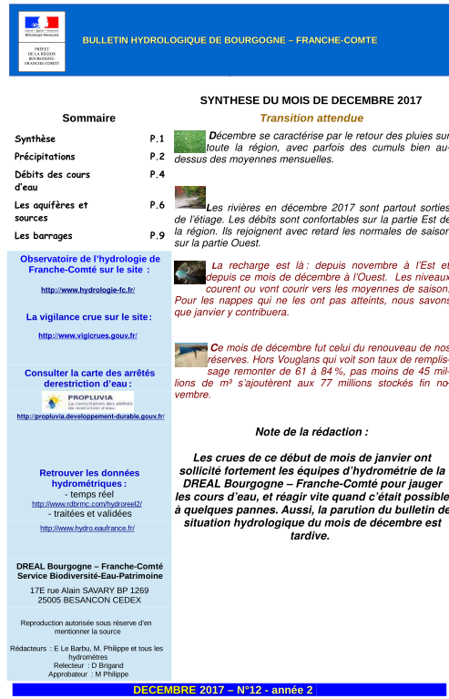 Bulletin hydrologique Décembre 2017