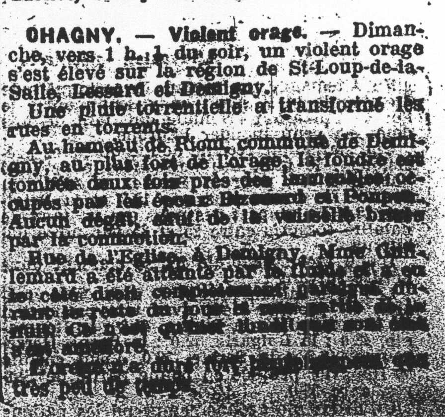 1914 12 juillet 1914 Inondation par ruissellement Ruissellement Commune DEMIGNY (71) modifier supprimer