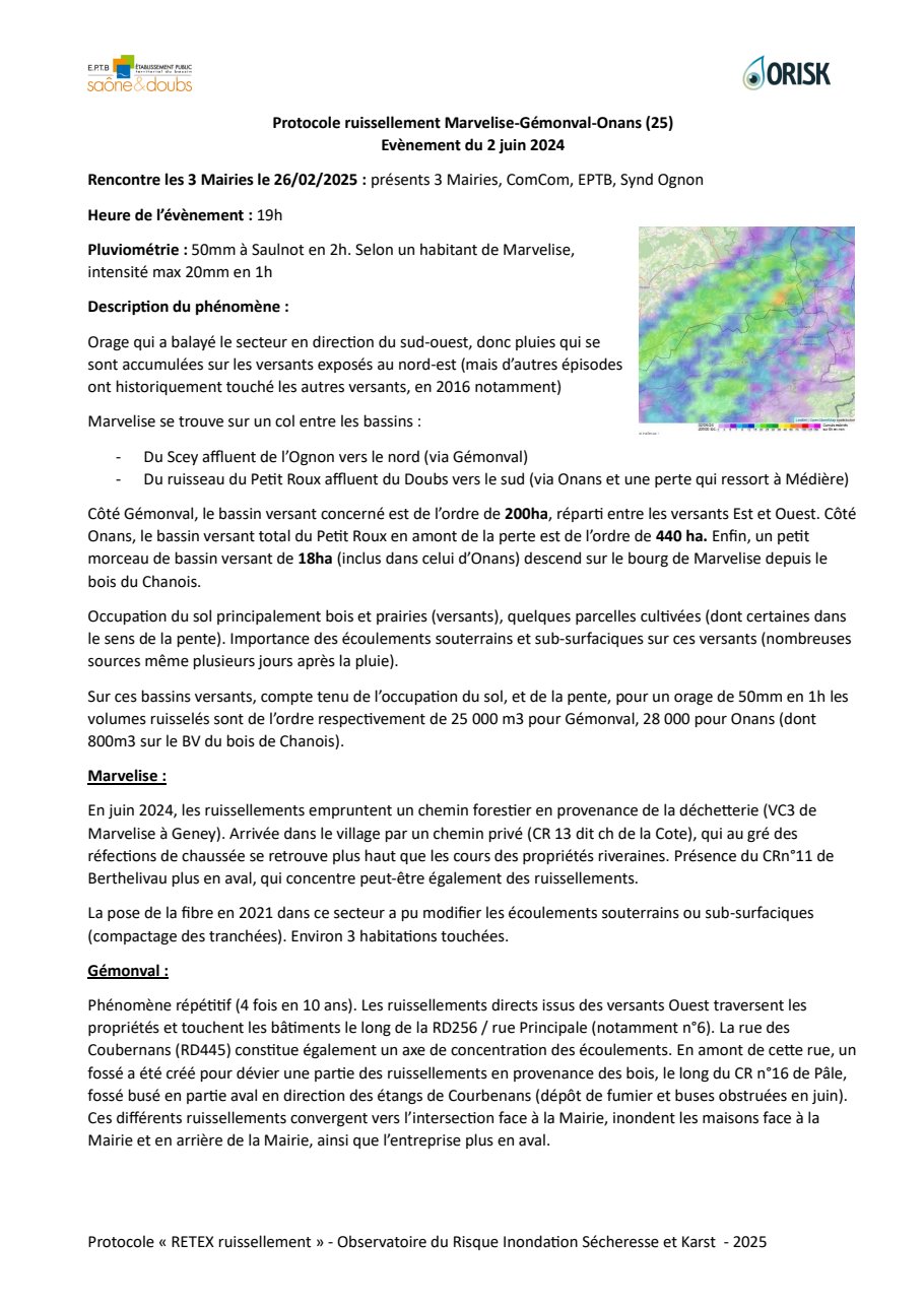 Fiche Retex Ruissellement Marvelise-Gémonval-Onans 2024