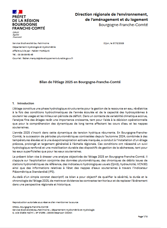 Bilan de l'étiage 2025 en Bourgogne-Franche-Comté