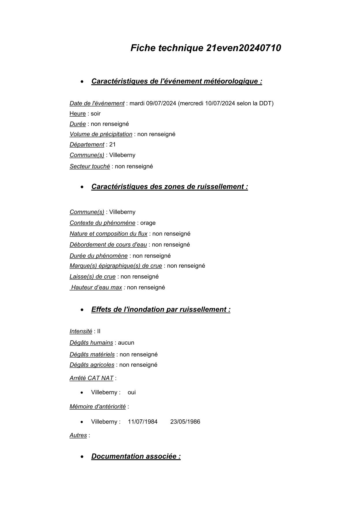 Synthèse de l'évènement de ruissellement du 10/07/2024 en 21