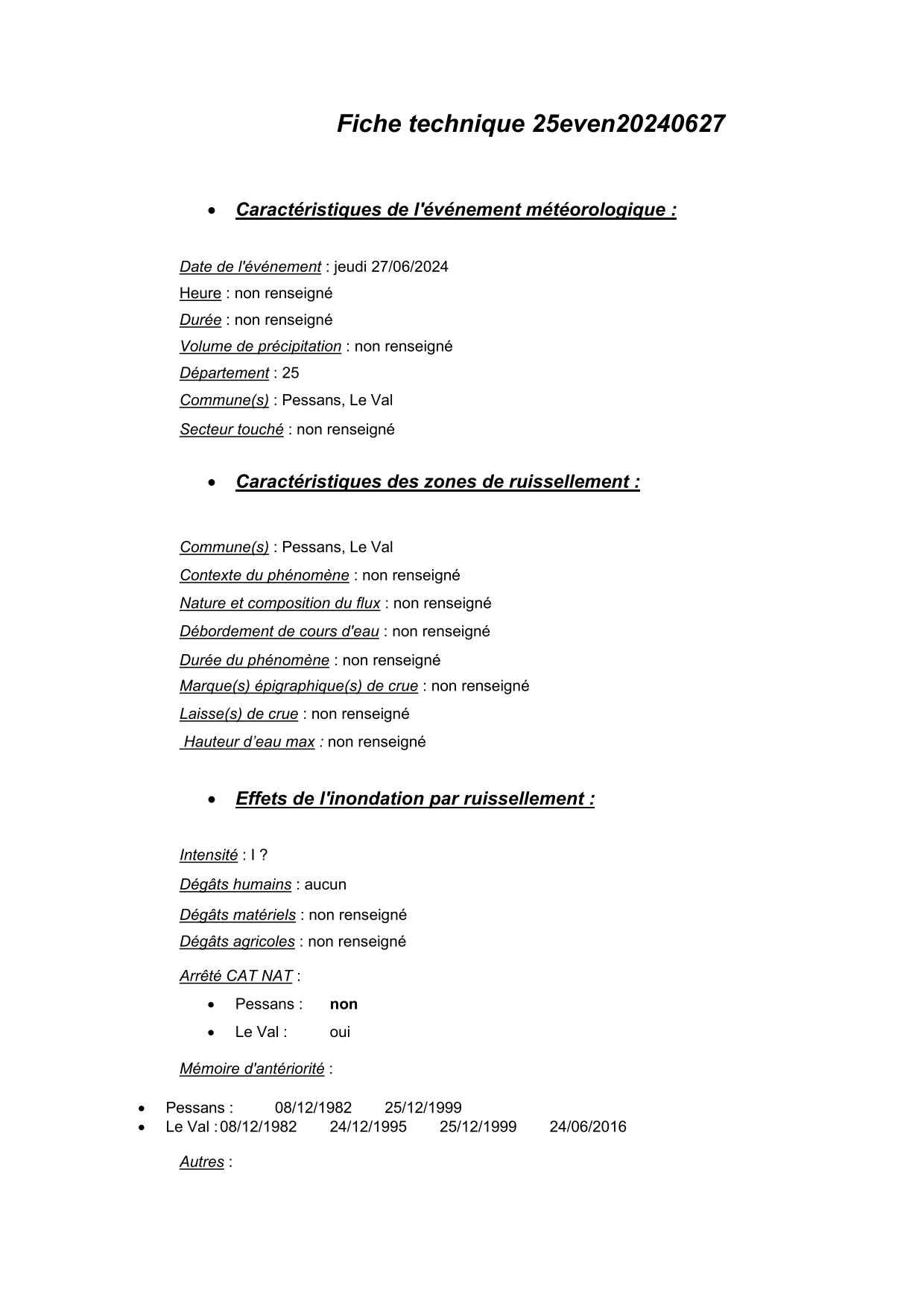 Synthèse de l'évènement de ruissellement du 27/06/2024 en 25
