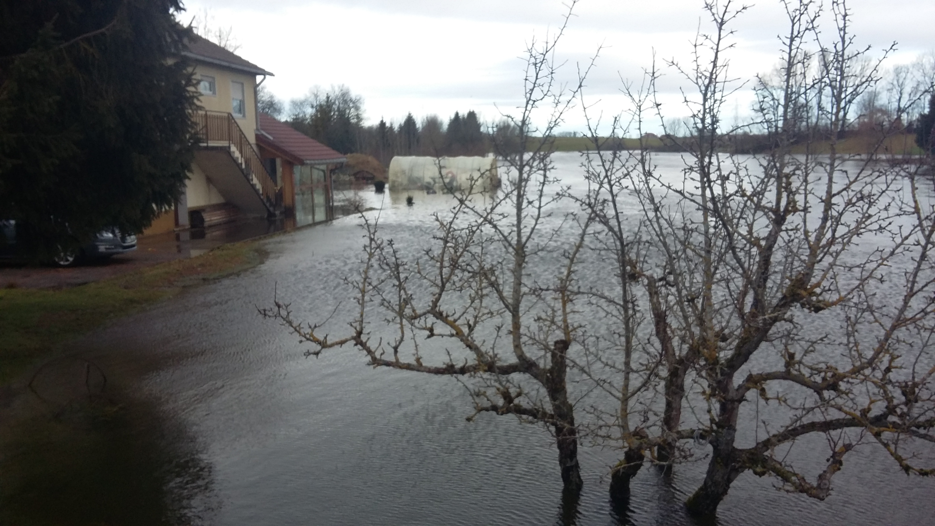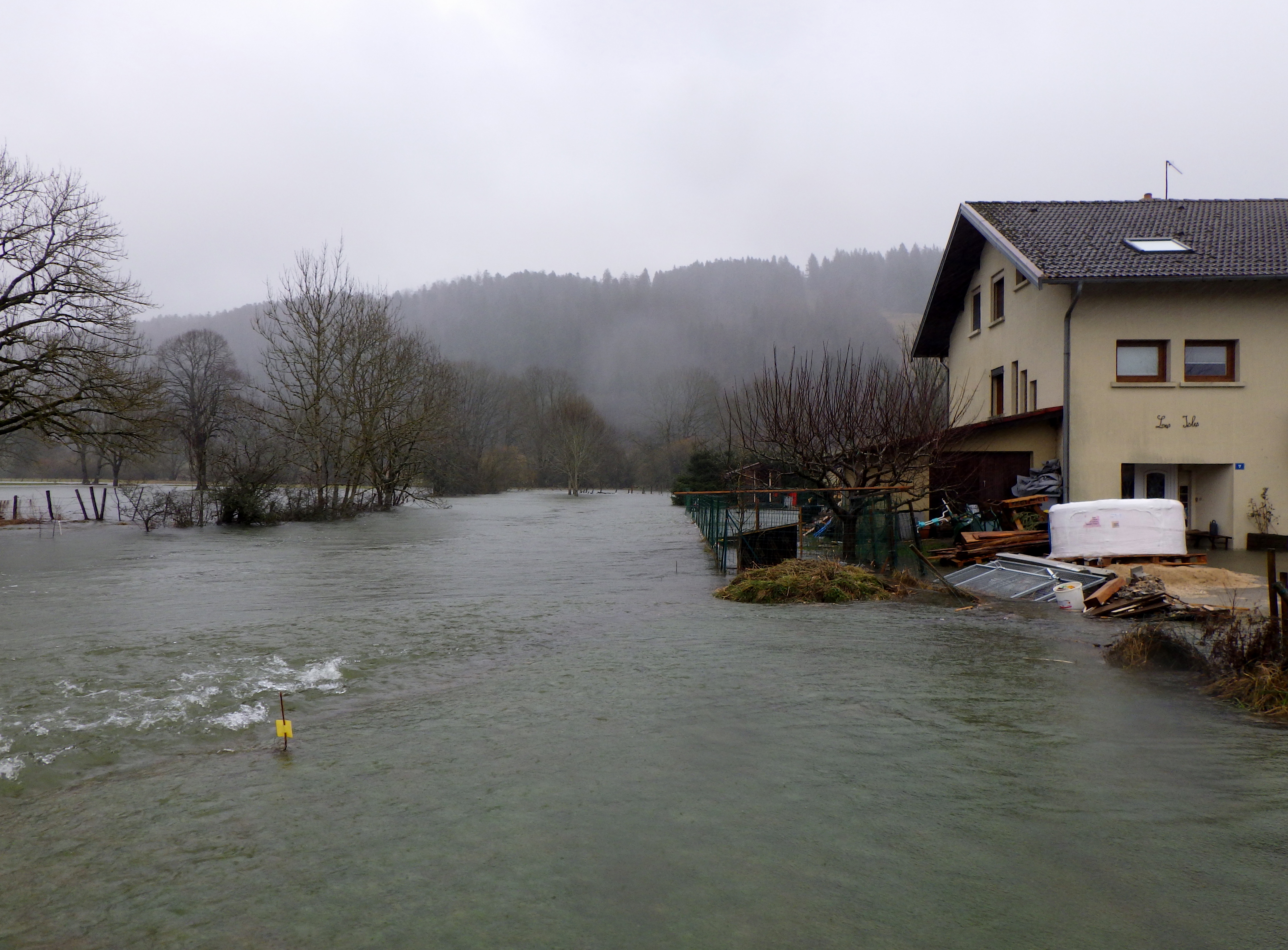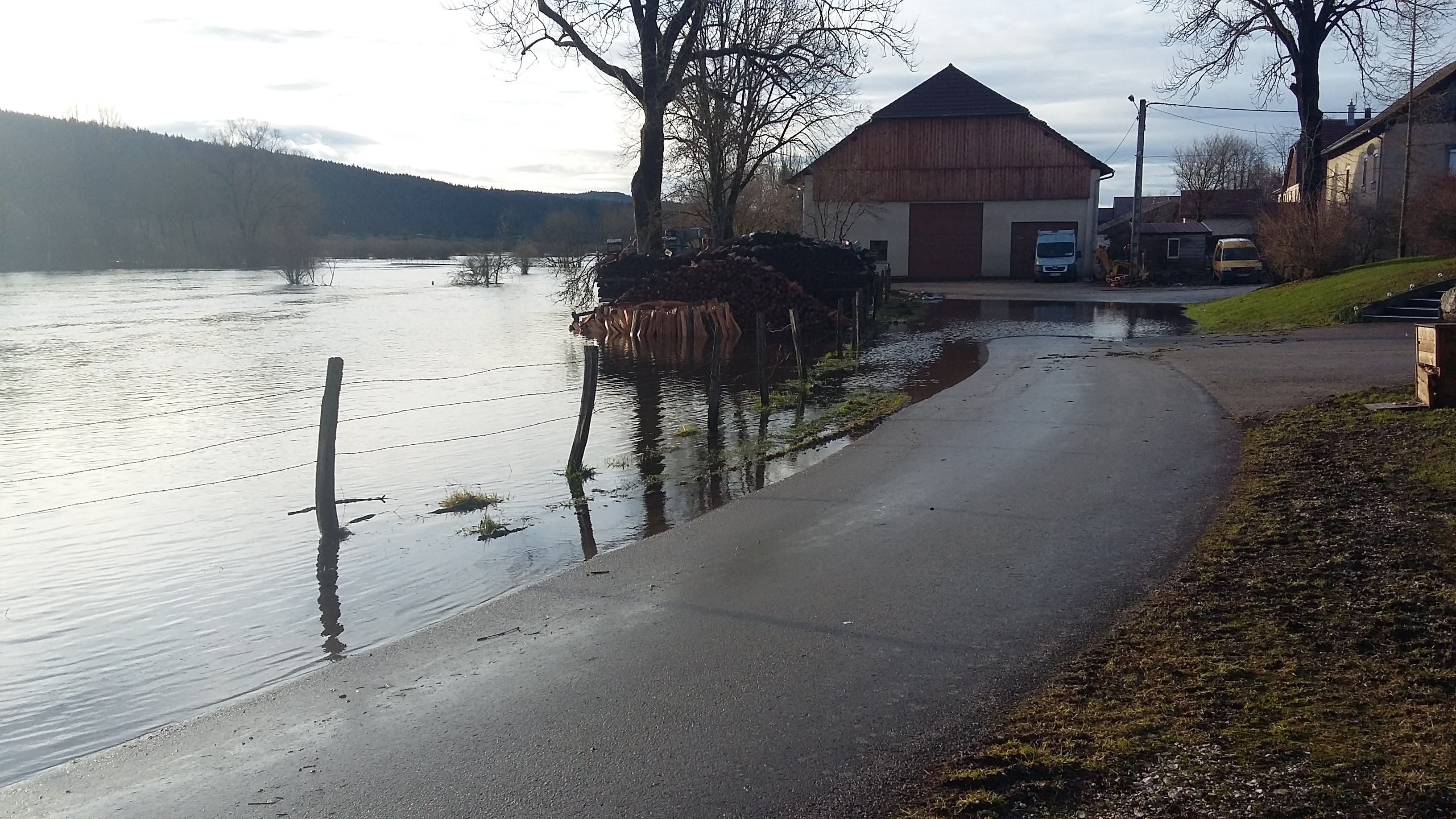 Photo de la crue du Drugeon de janvier 2018 à Bonnevaux 25