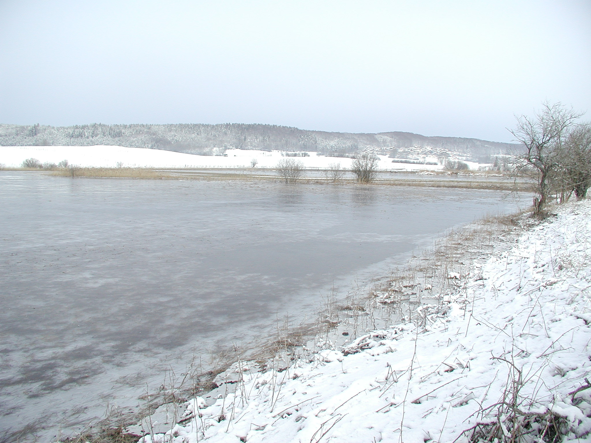 Photo de la crue du Drugeon de janvier 2004 à Bouverans, etang des pêcheurs 2