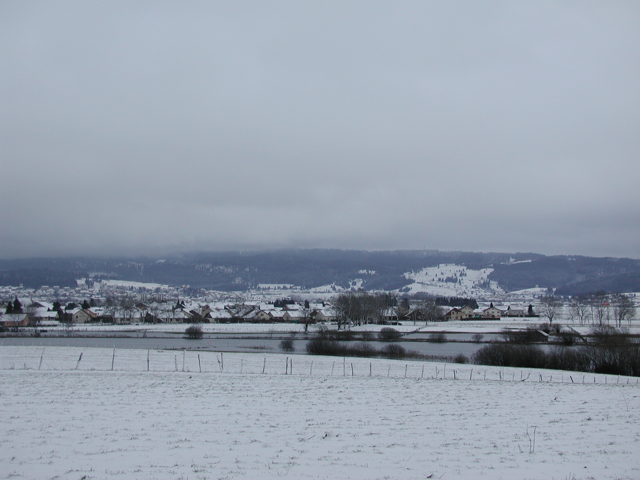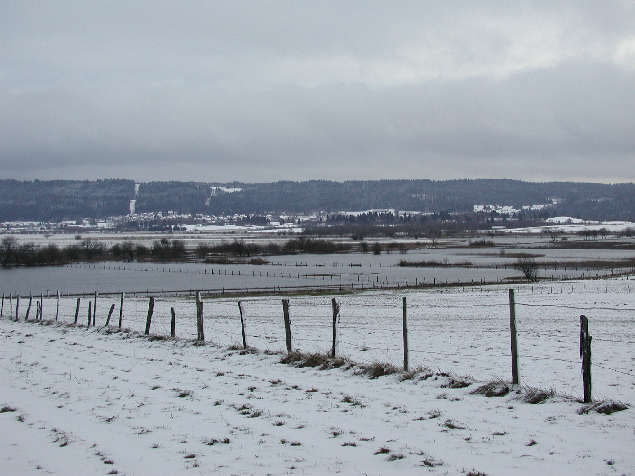 Photo de la crue du Drugeon de janvier 2004 à Houtaud 53
