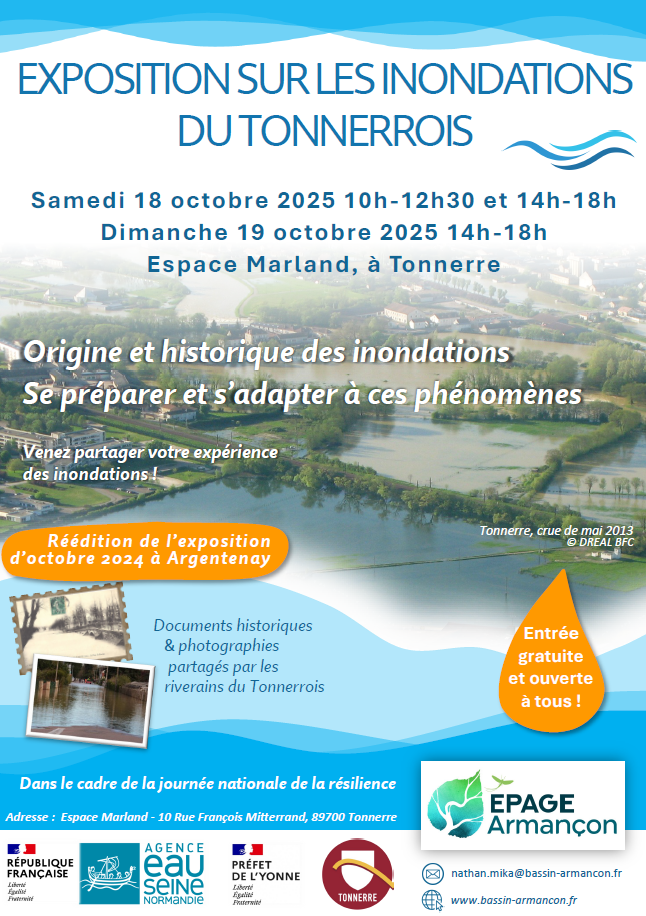 Les 18 et 19 octobre prochains, se tiendra la réédition de l’exposition sur les inondations du Tonnerrois, à l’Espace Marland de Tonnerre. Ouverte à tous les publics, elle permettra de faire revivre la mémoire des crues, anciennes comme récentes, mais aussi d’aborder leur origine, leurs conséquences, et les moyens de s’y adapter.
