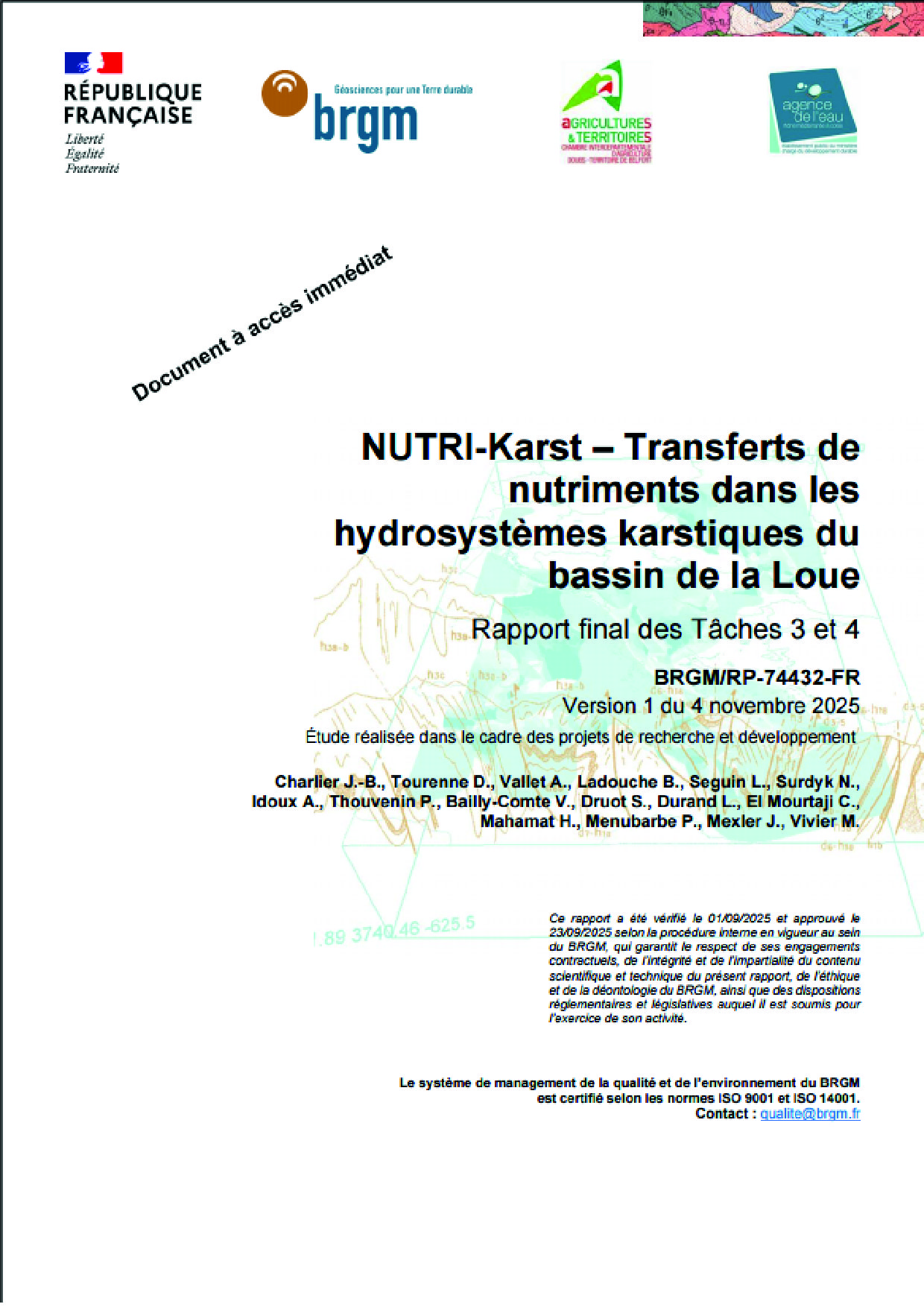 NUTRI-Karst - Transferts de nutriments dans les hydrosystèmes karstiques du bassin de la Loue. Rapport Tâches 3 et 4