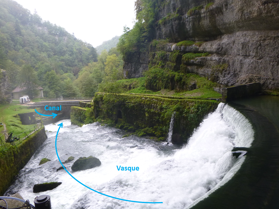 - d'autre part, par le "canal" situé directement en aval de la vasque, duquel s'écoule le premier affluent de la Loue.