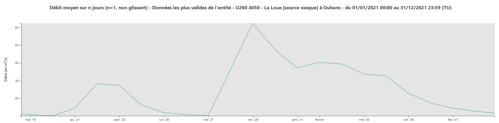 Ci-dessous une illustration des débits de la crue de fin janvier 2021 dispo sur hydroportail :