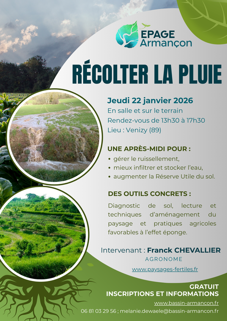 L'EPAGE Armançon propose le jeudi 22 janvier une demi-journée dédiée aux sols et à la gestion de l’eau de la parcelle au territoire, à destination des agriculteurs en priorité.
