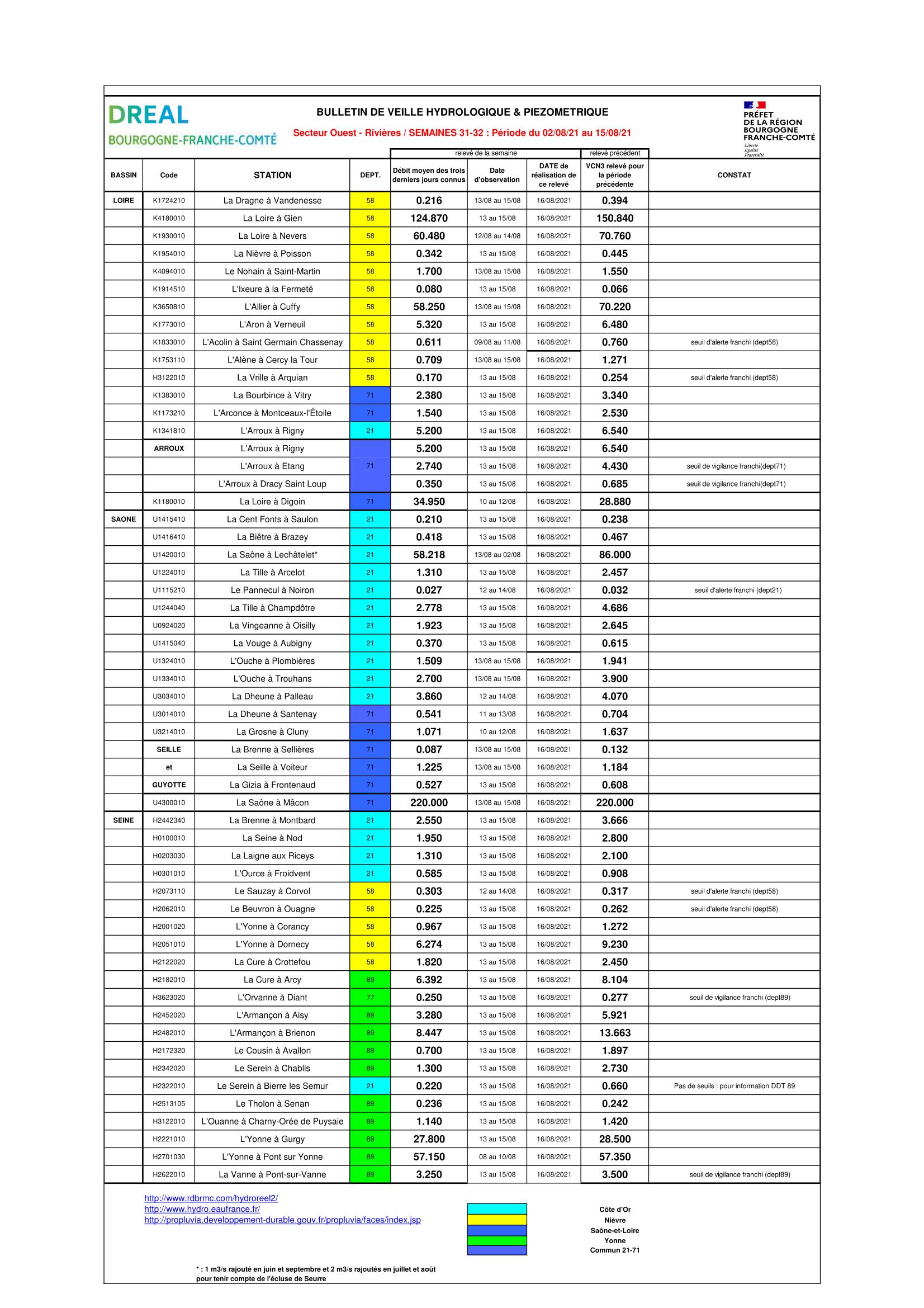 Bulletin Sécheresse BFC/Ouest 16-08-2021