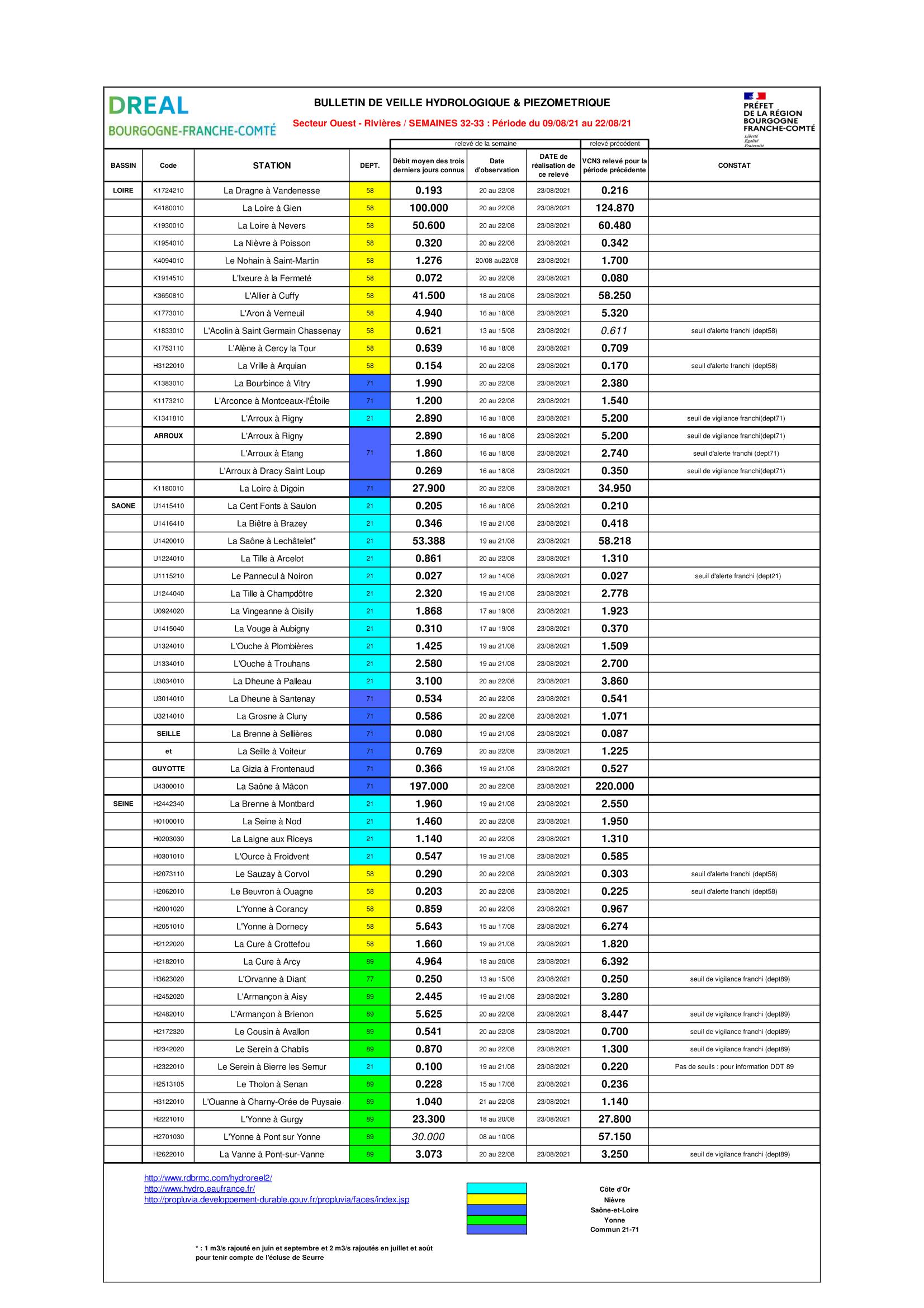 Bulletin Sécheresse BFC/Ouest 23-08-2021