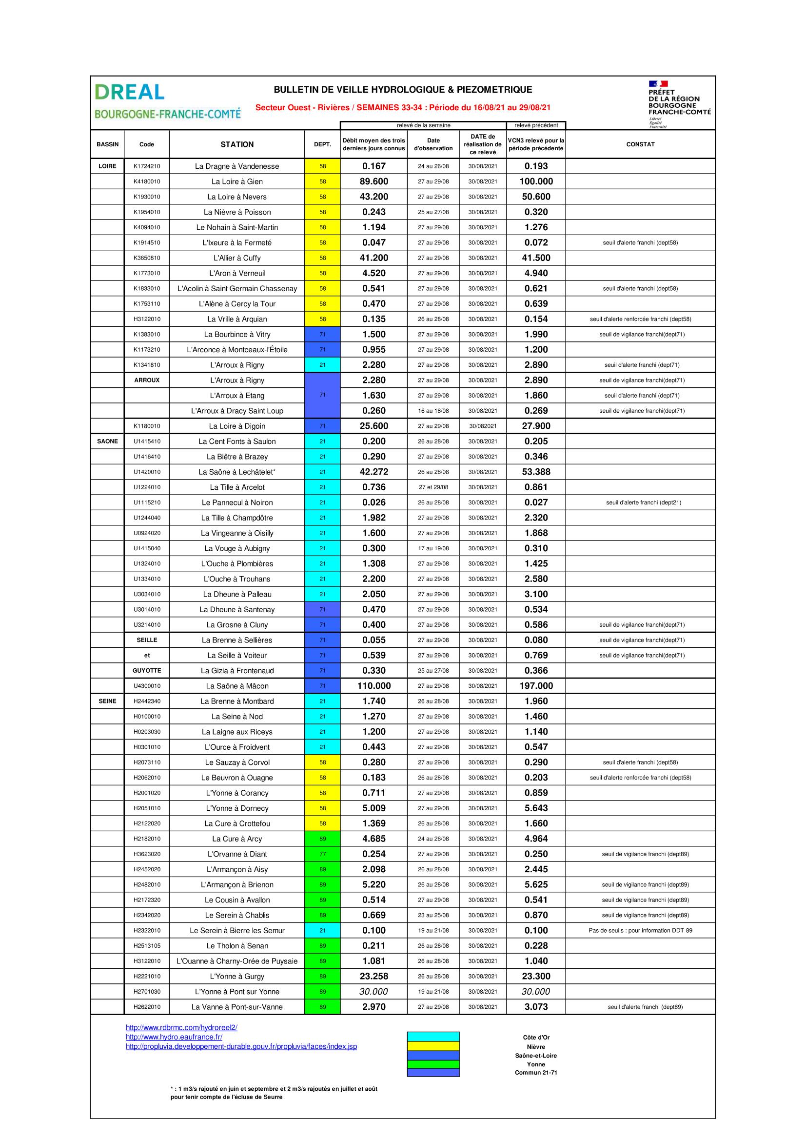 Bulletin Sécheresse BFC/Ouest 30-08-2021