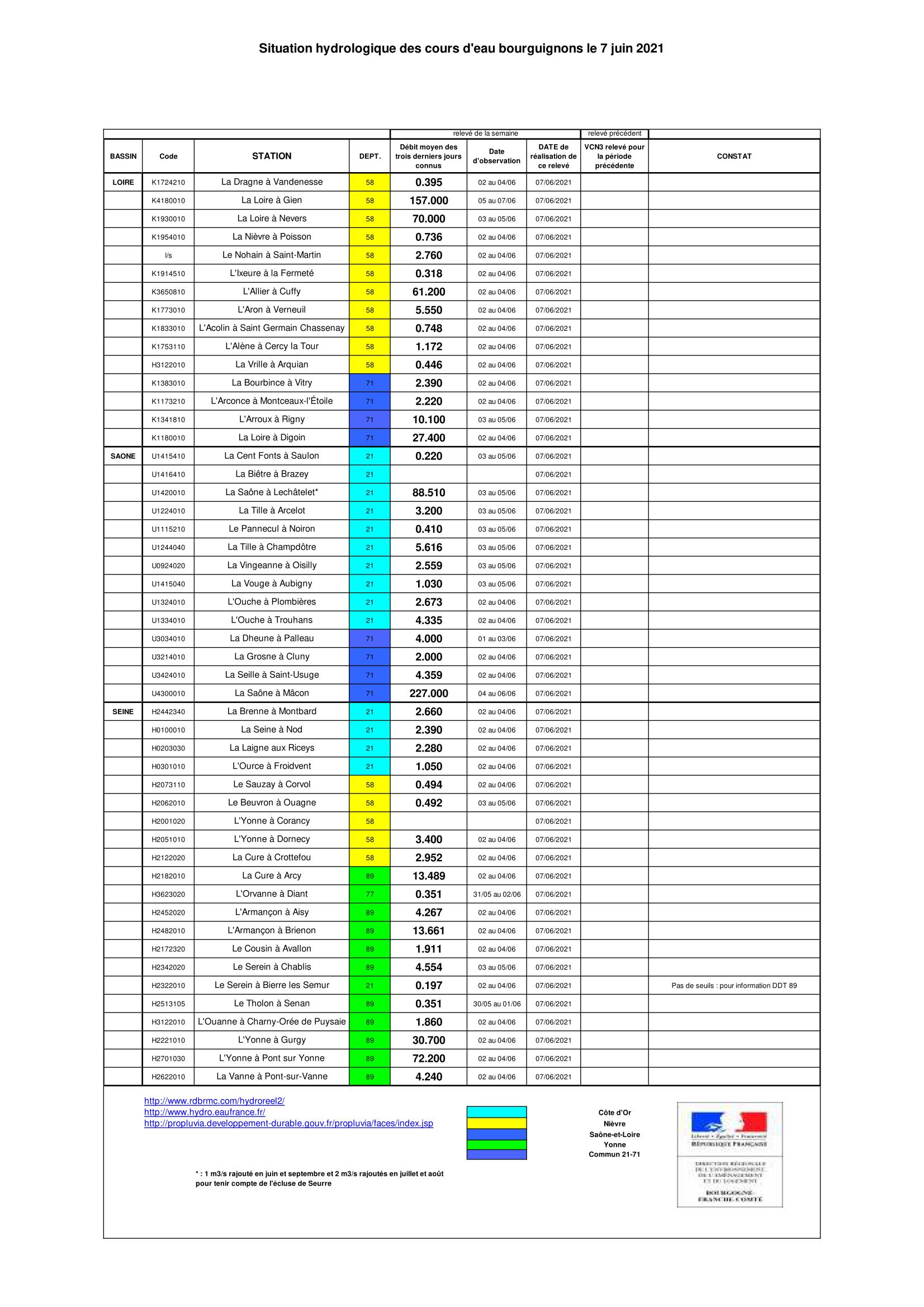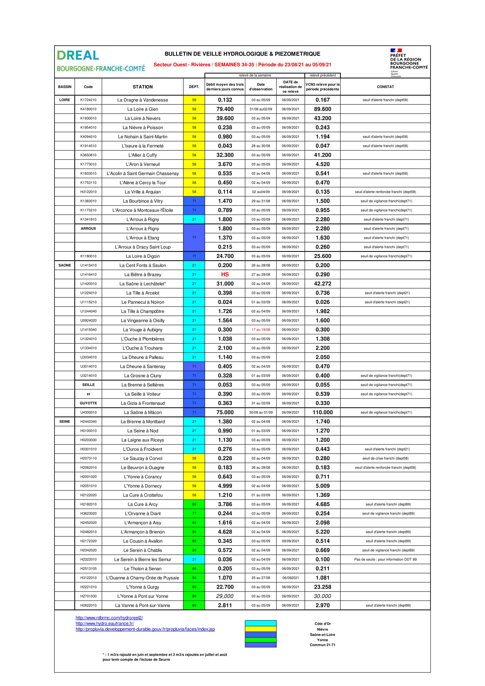 Bulletin Sécheresse BFC/Ouest 07-06-2021