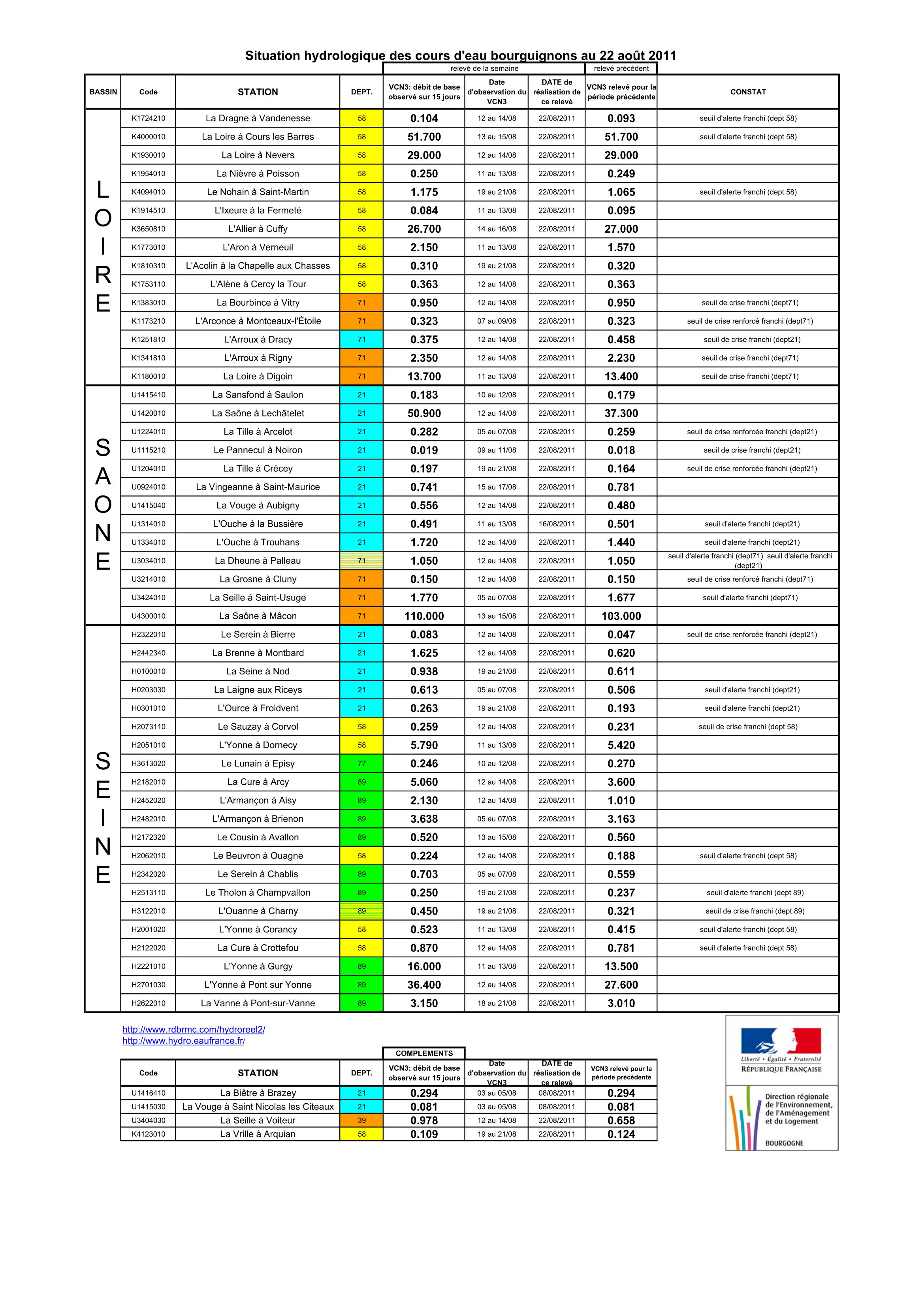 Bulletin Sécheresse BFC/Ouest 22-08-2011