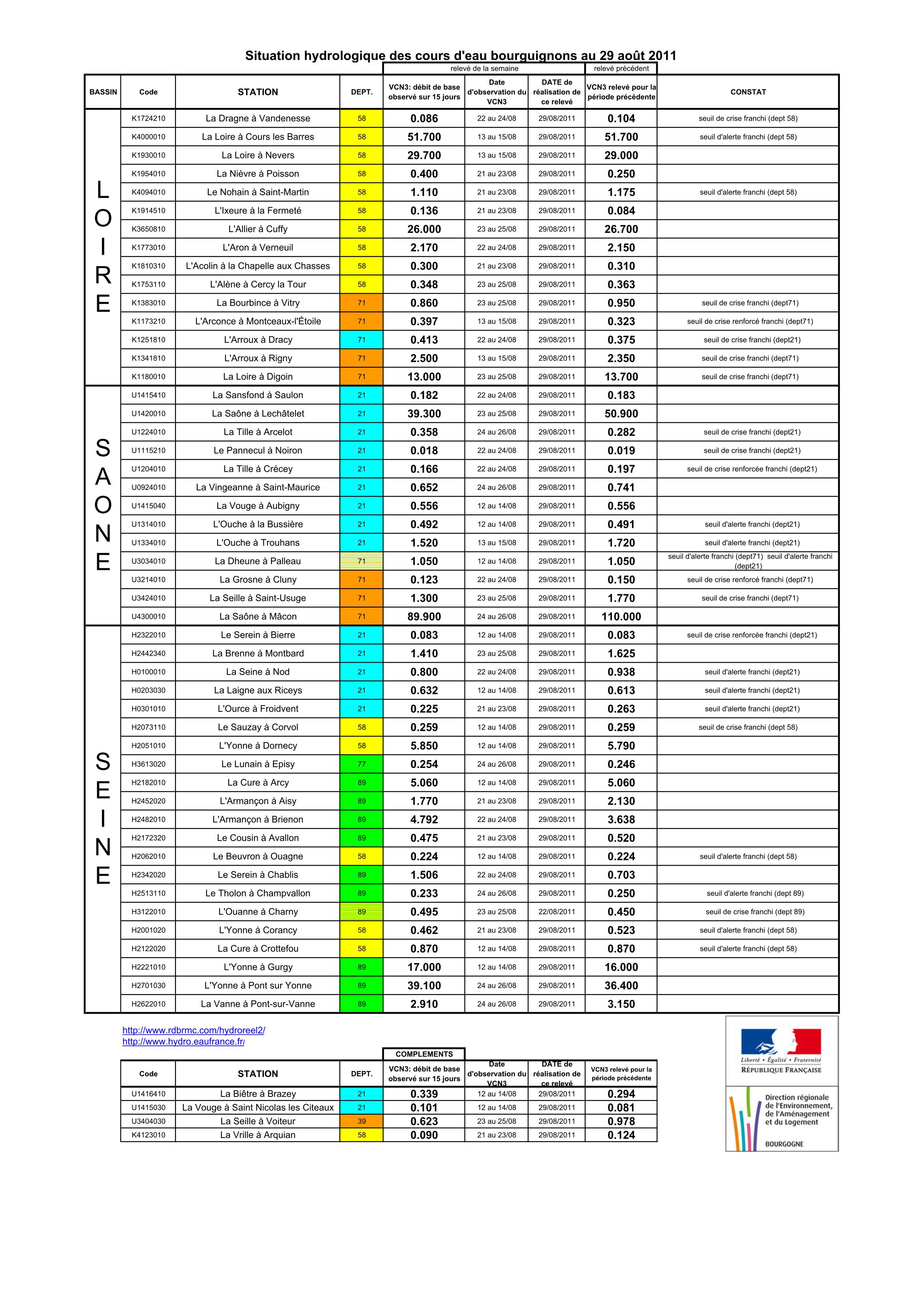 Bulletin Sécheresse BFC/Ouest 29-08-2011
