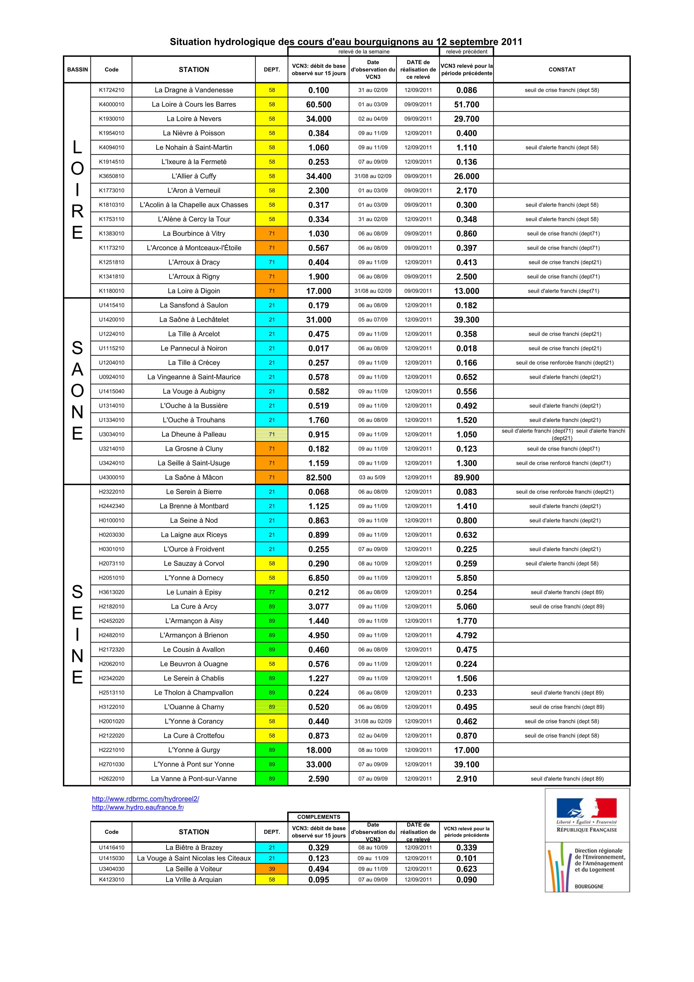 Bulletin Sécheresse BFC/Ouest 12-09-2011
