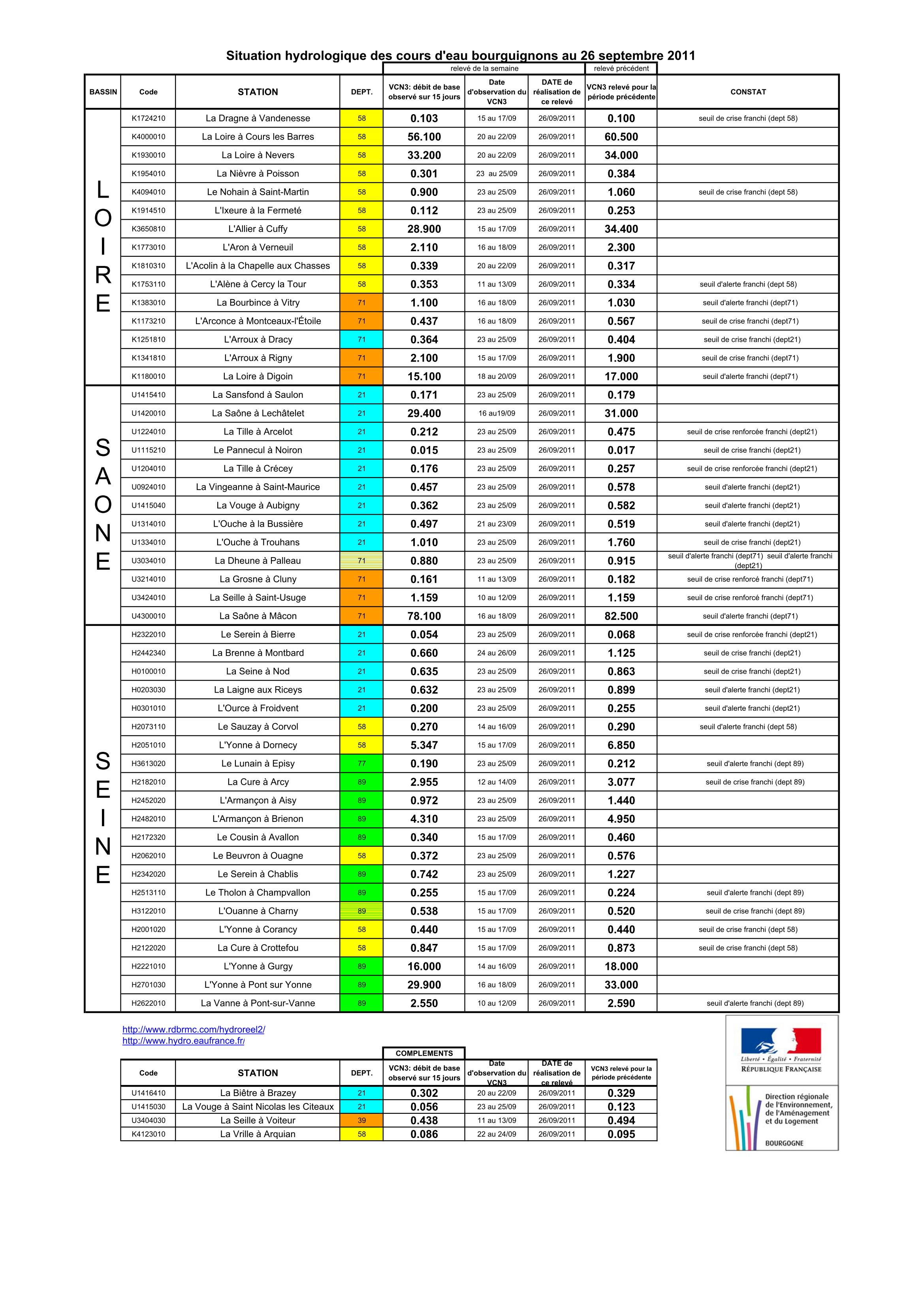 Bulletin Sécheresse BFC/Ouest 26-09-2011