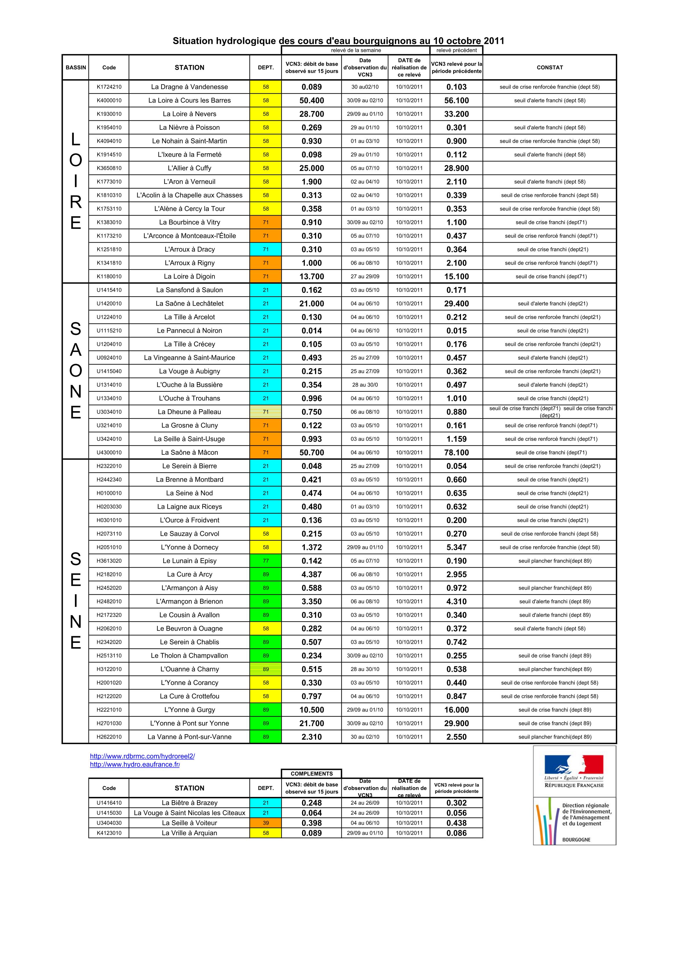 Bulletin Sécheresse BFC/Ouest 10-10-2011