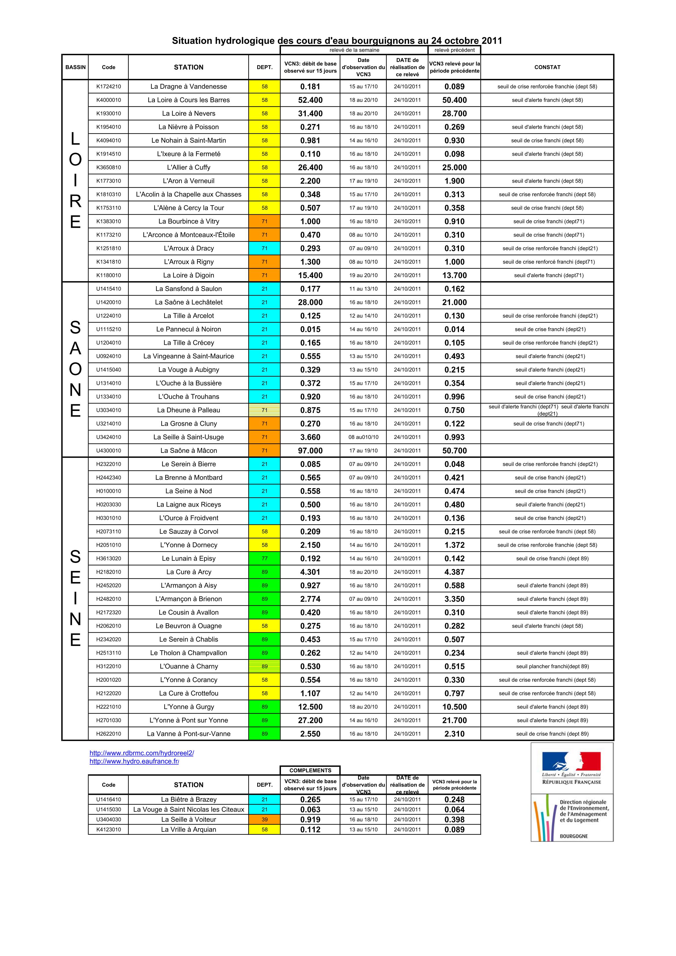 Bulletin Sécheresse BFC/Ouest 24-10-2011