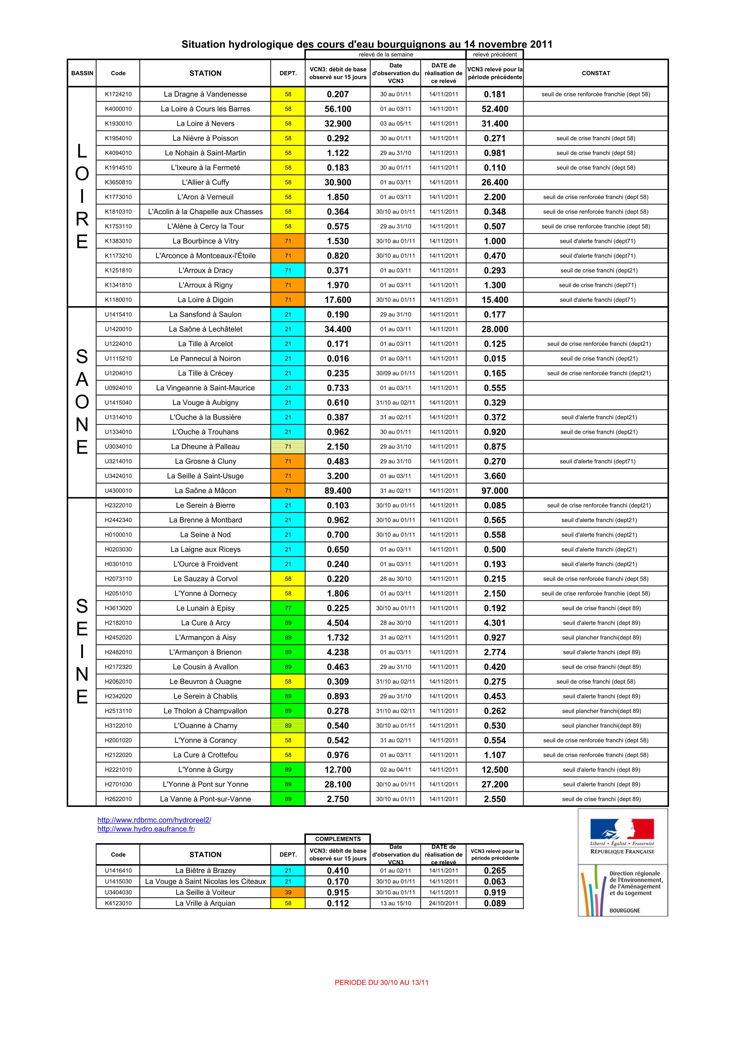 Bulletin Sécheresse BFC/Ouest 14-11-2011
