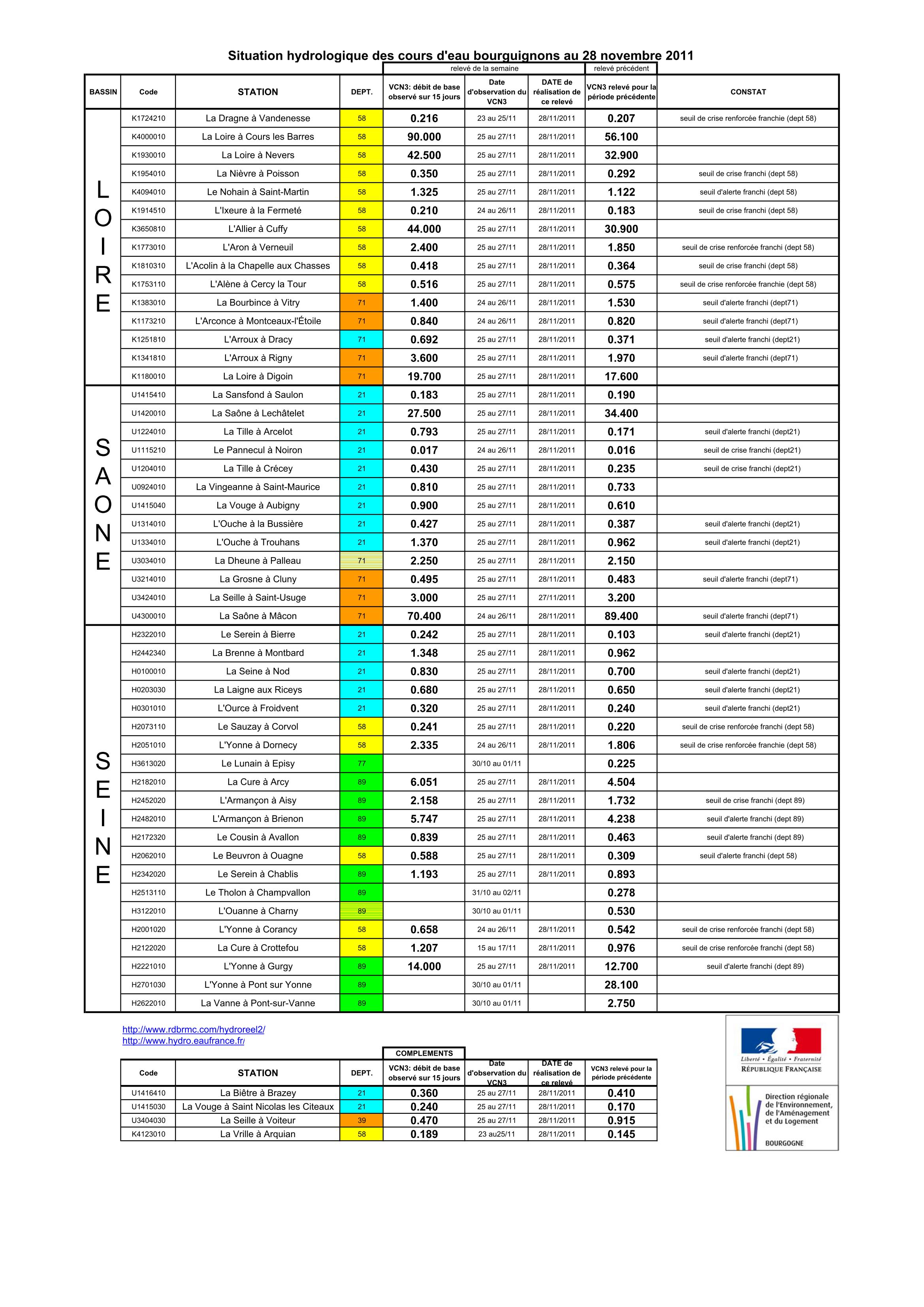 Bulletin Sécheresse BFC/Ouest 28-11-2011