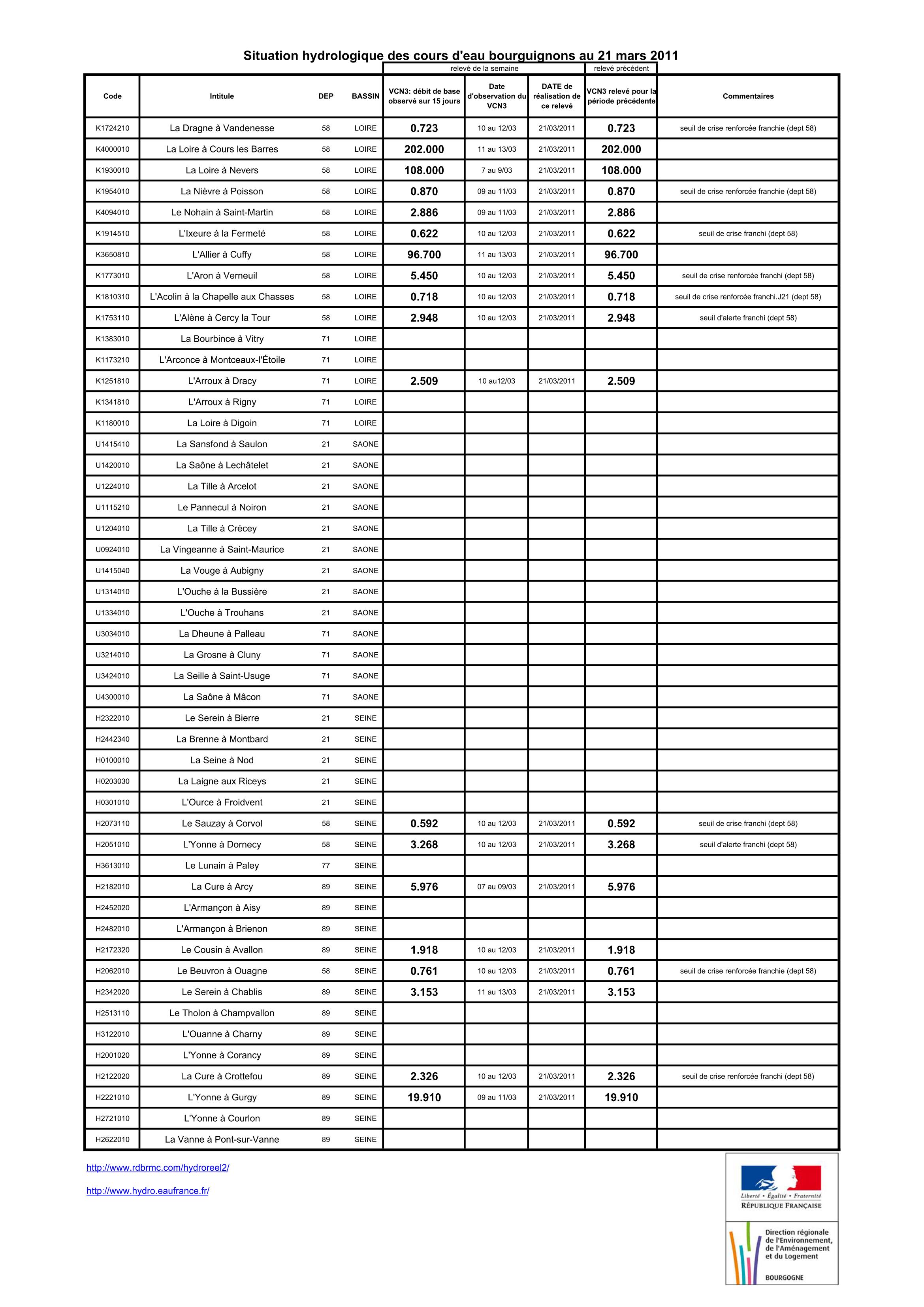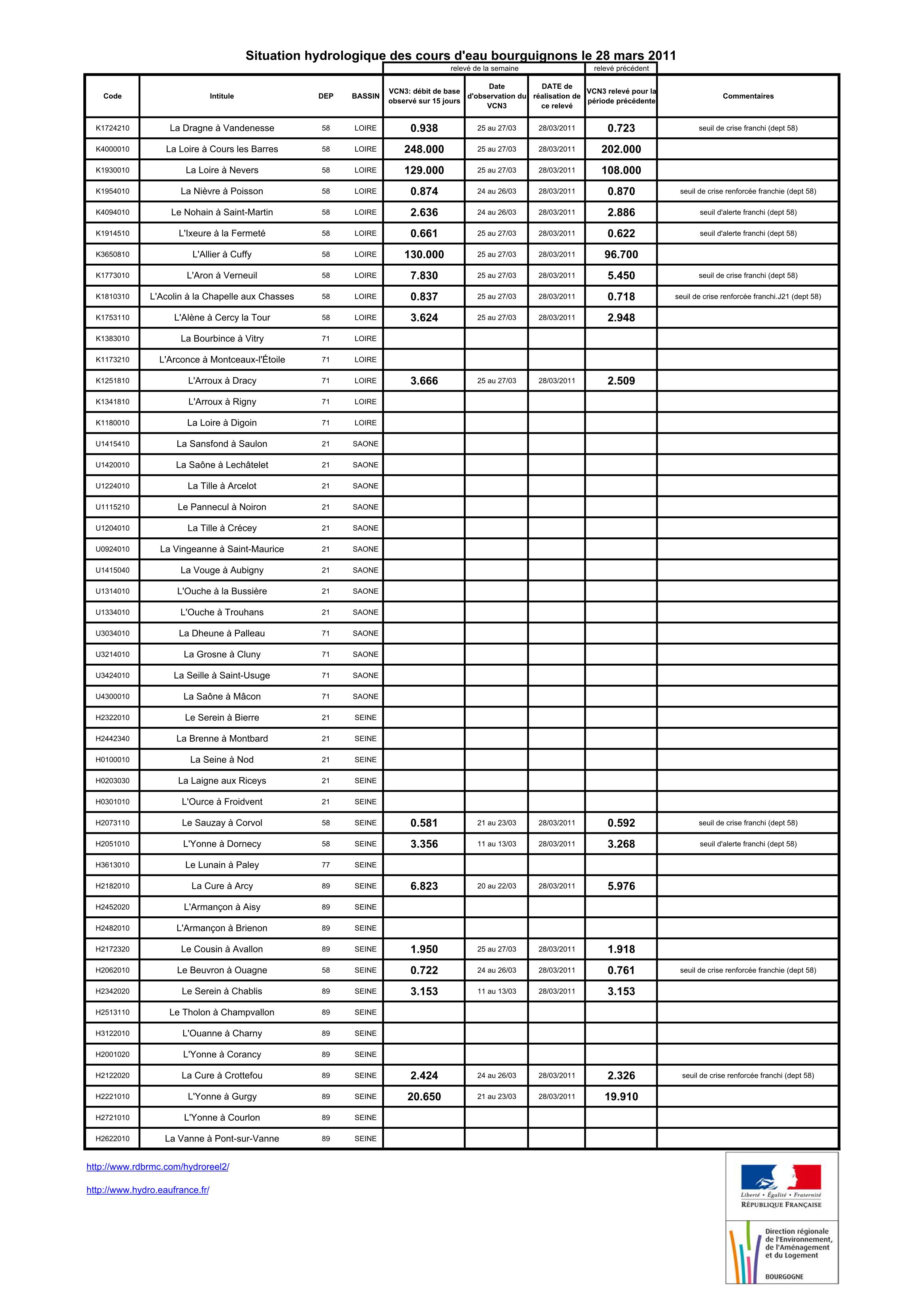 Bulletin Sécheresse BFC/Ouest 28-03-2011