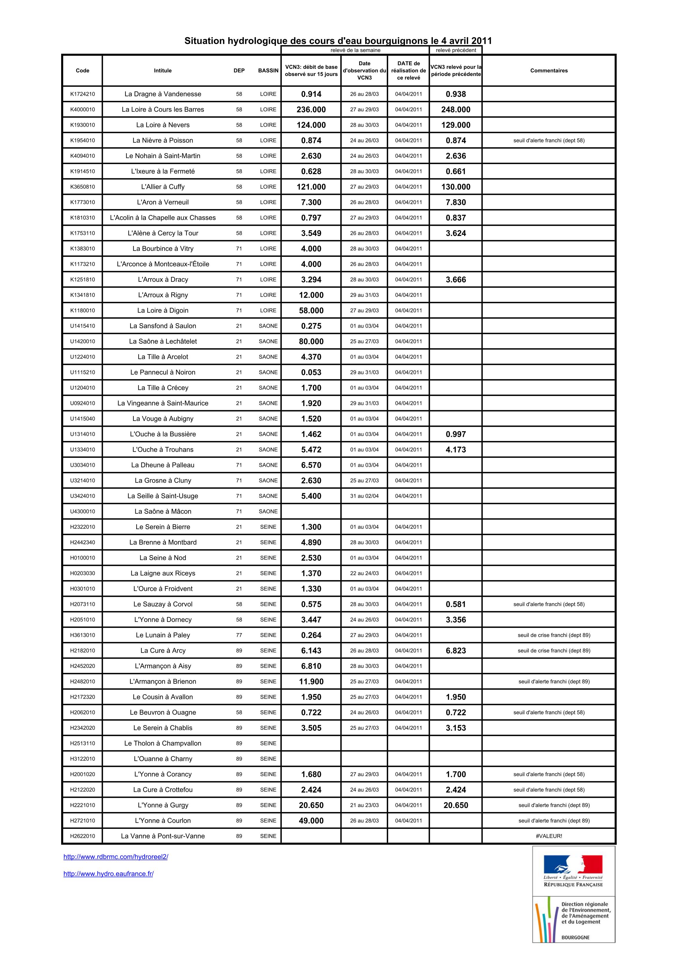 Bulletin Sécheresse BFC/Ouest 04-04-2011