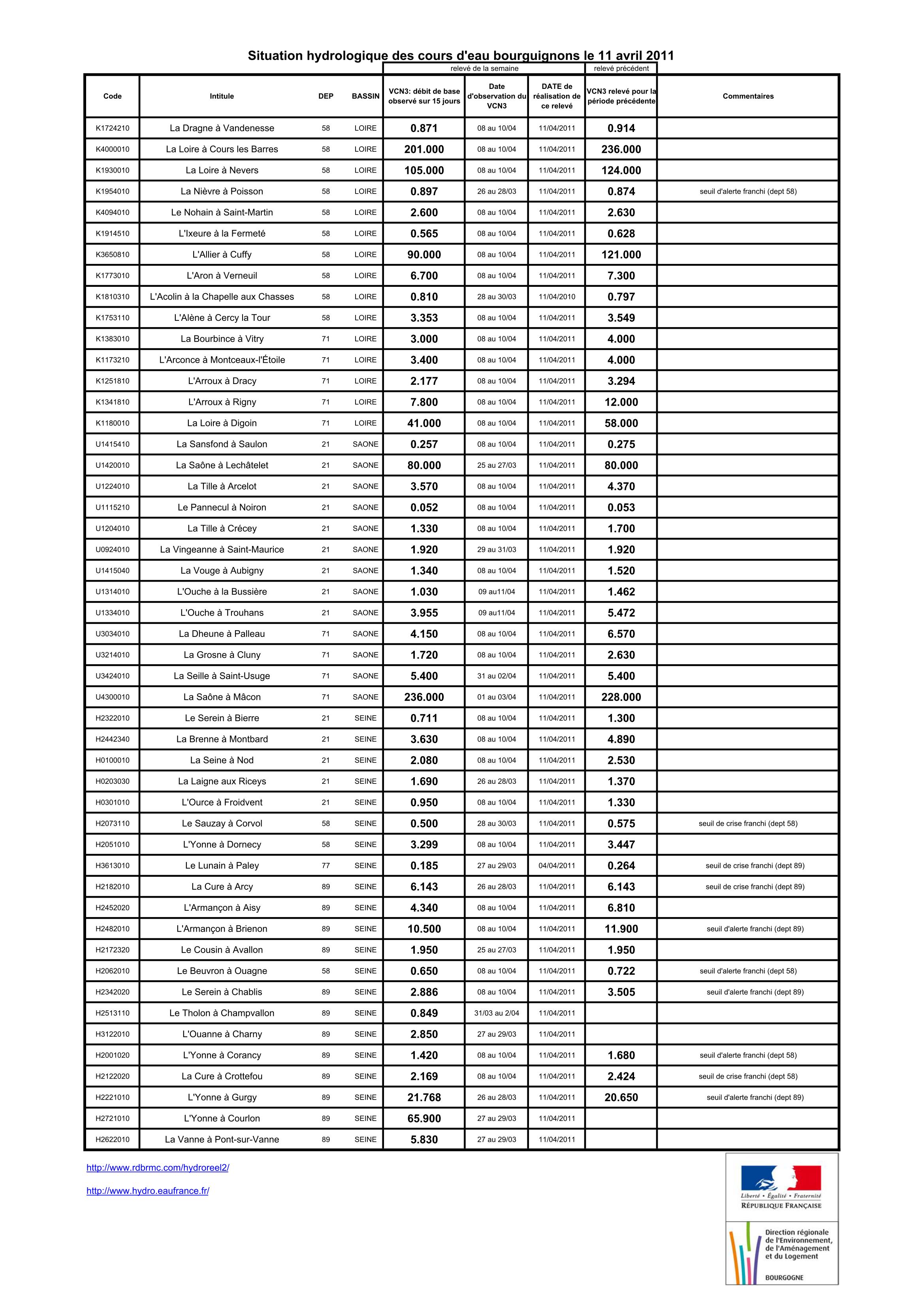 Bulletin Sécheresse BFC/Ouest 11-04-2011