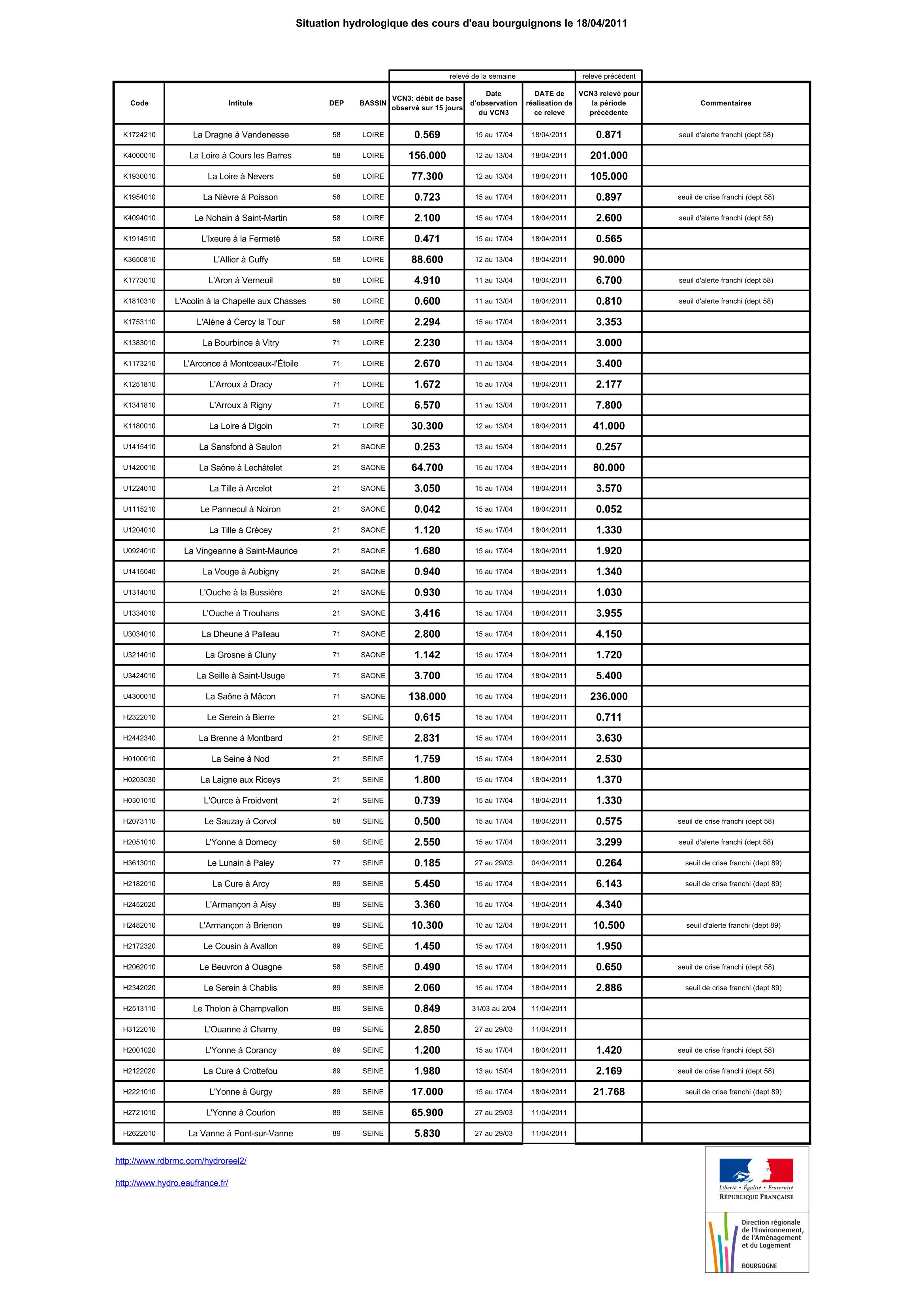 Bulletin Sécheresse BFC/Ouest 18-04-2011