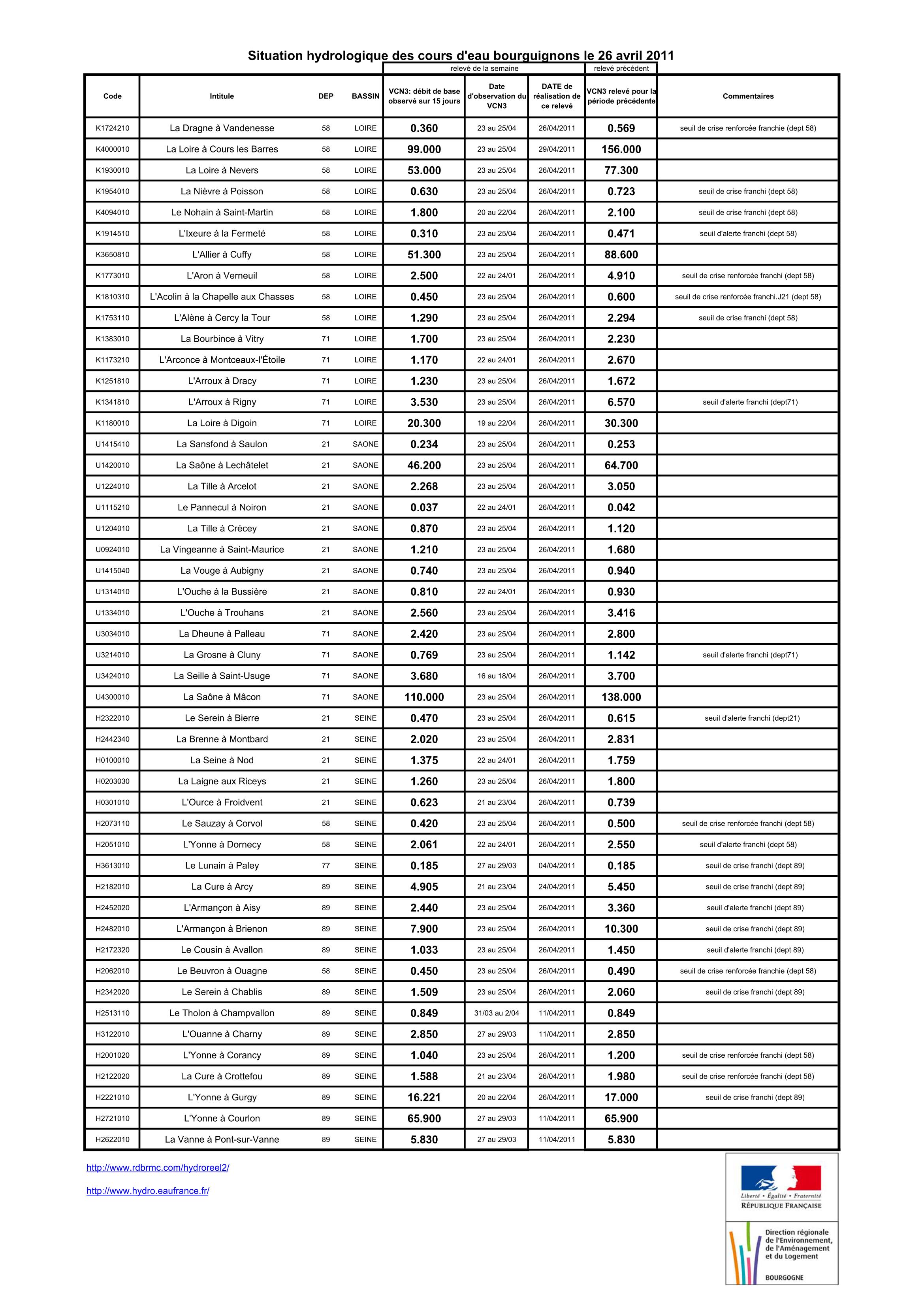 Bulletin Sécheresse BFC/Ouest 26-04-2011