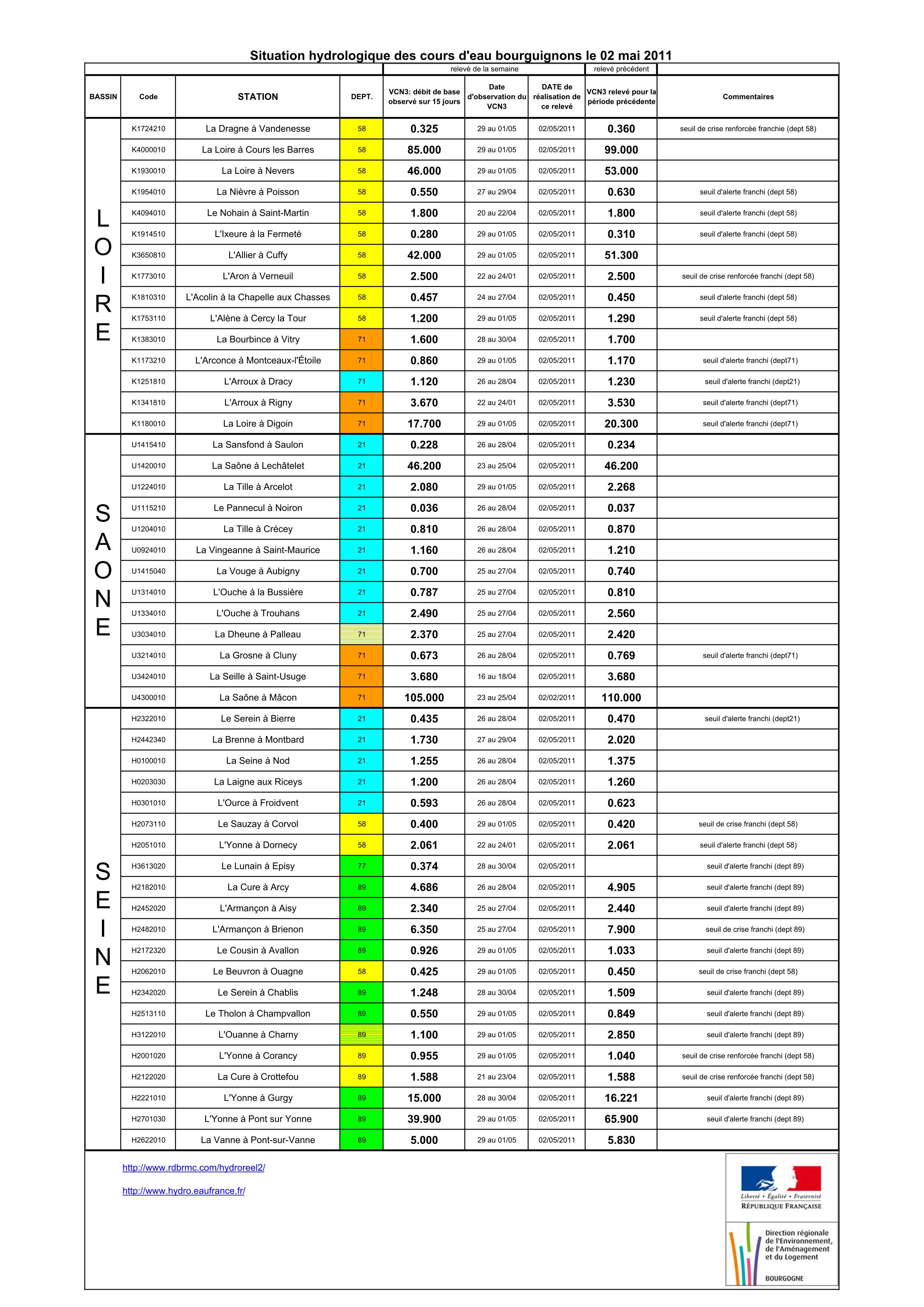 Bulletin Sécheresse BFC/Ouest 02-05-2011