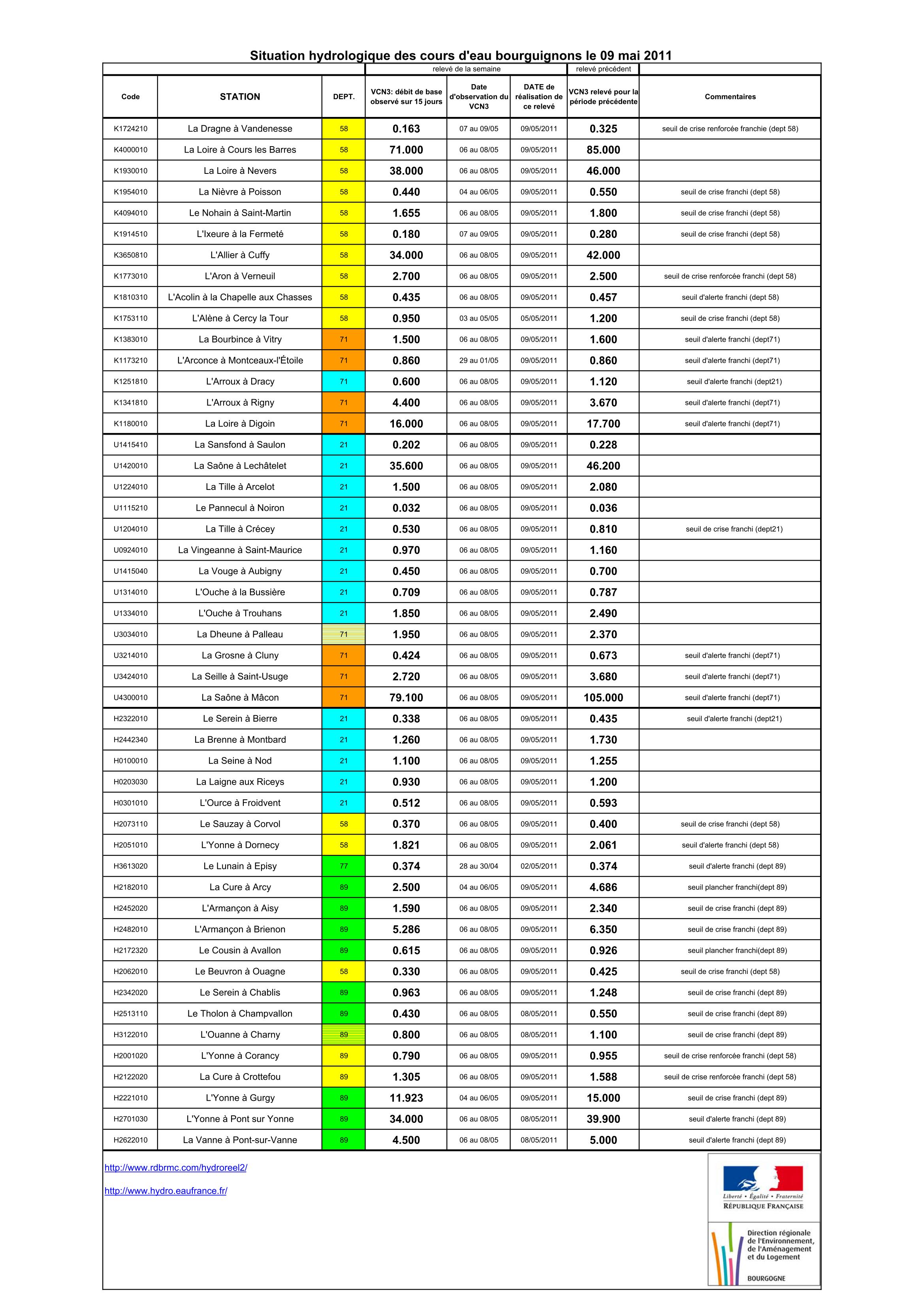 Bulletin Sécheresse BFC/Ouest 09-05-2011