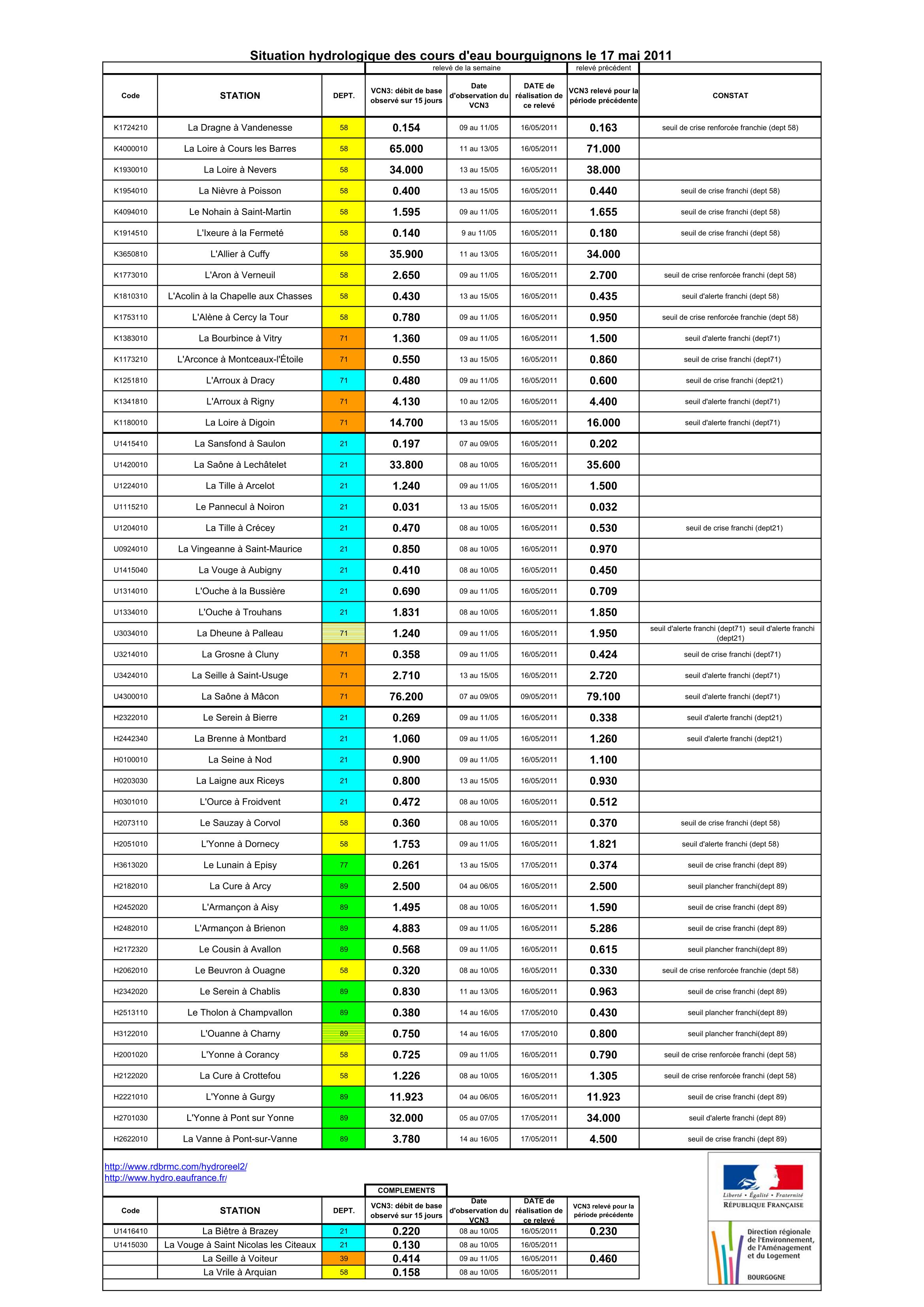 Bulletin Sécheresse BFC/Ouest 17-05-2011