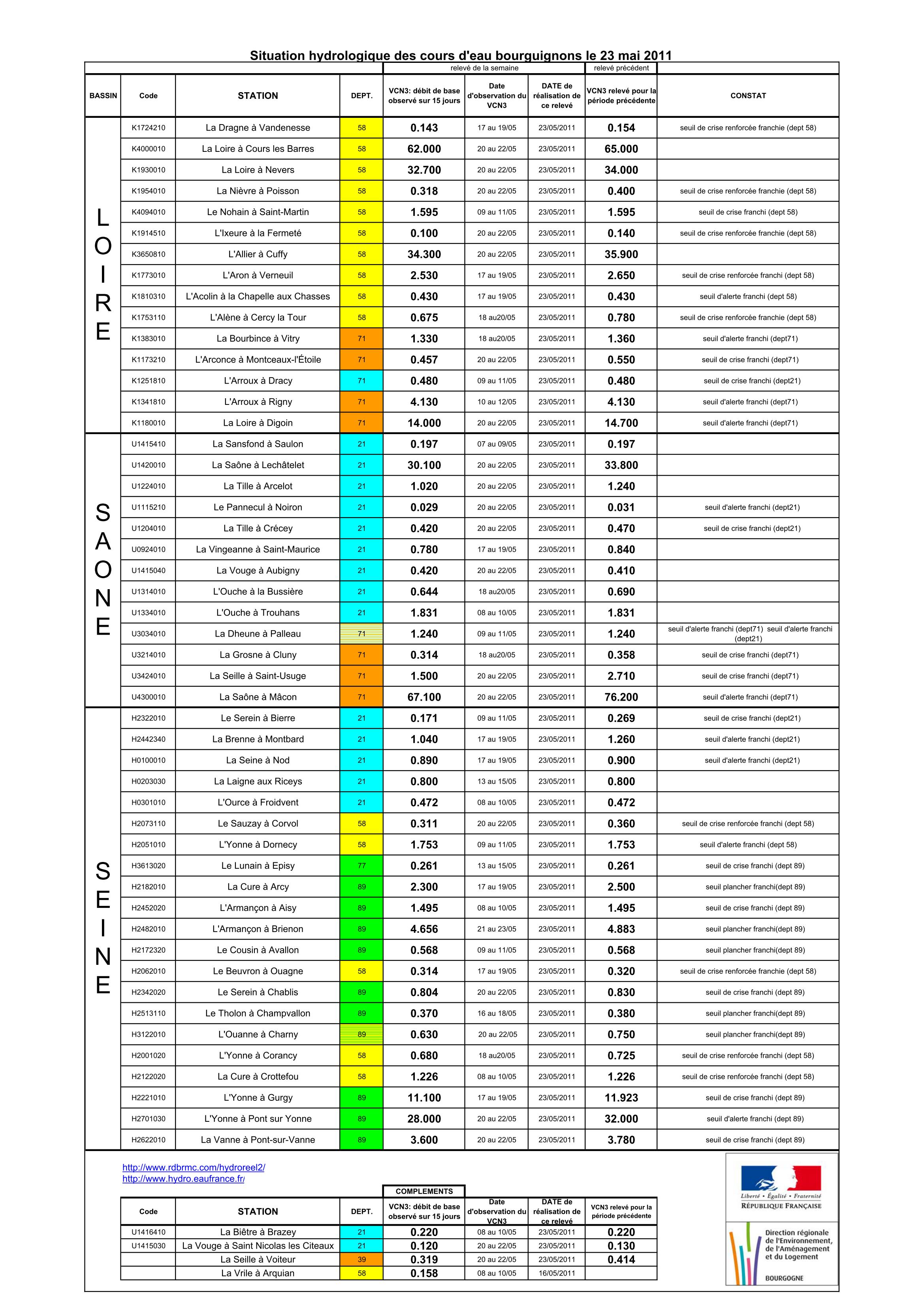Bulletin Sécheresse BFC/Ouest 23-05-2011