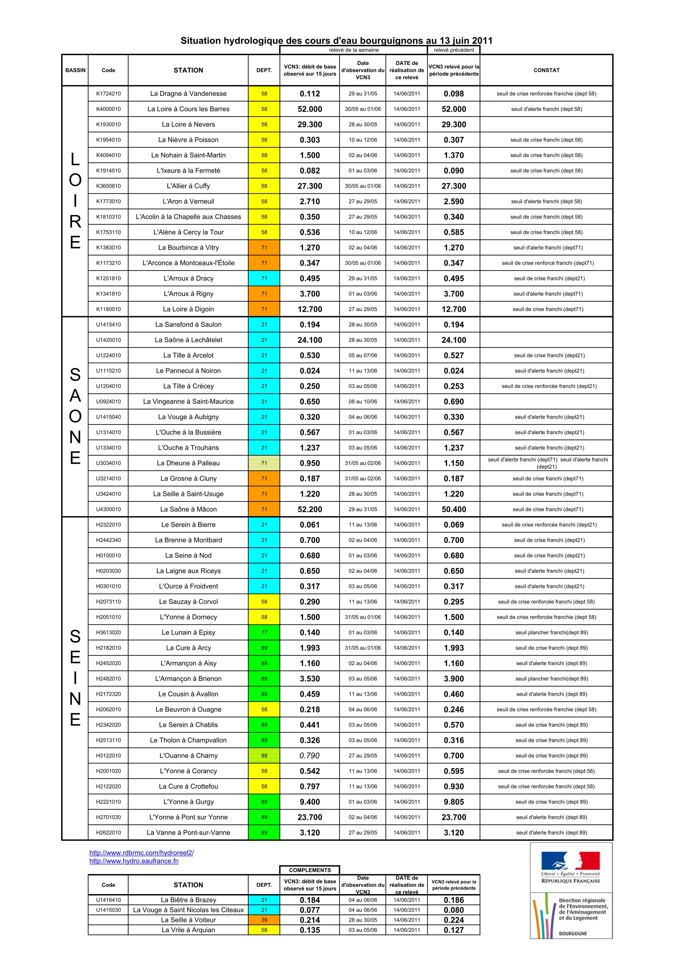 Bulletin Sécheresse BFC/Ouest 13-06-2011
