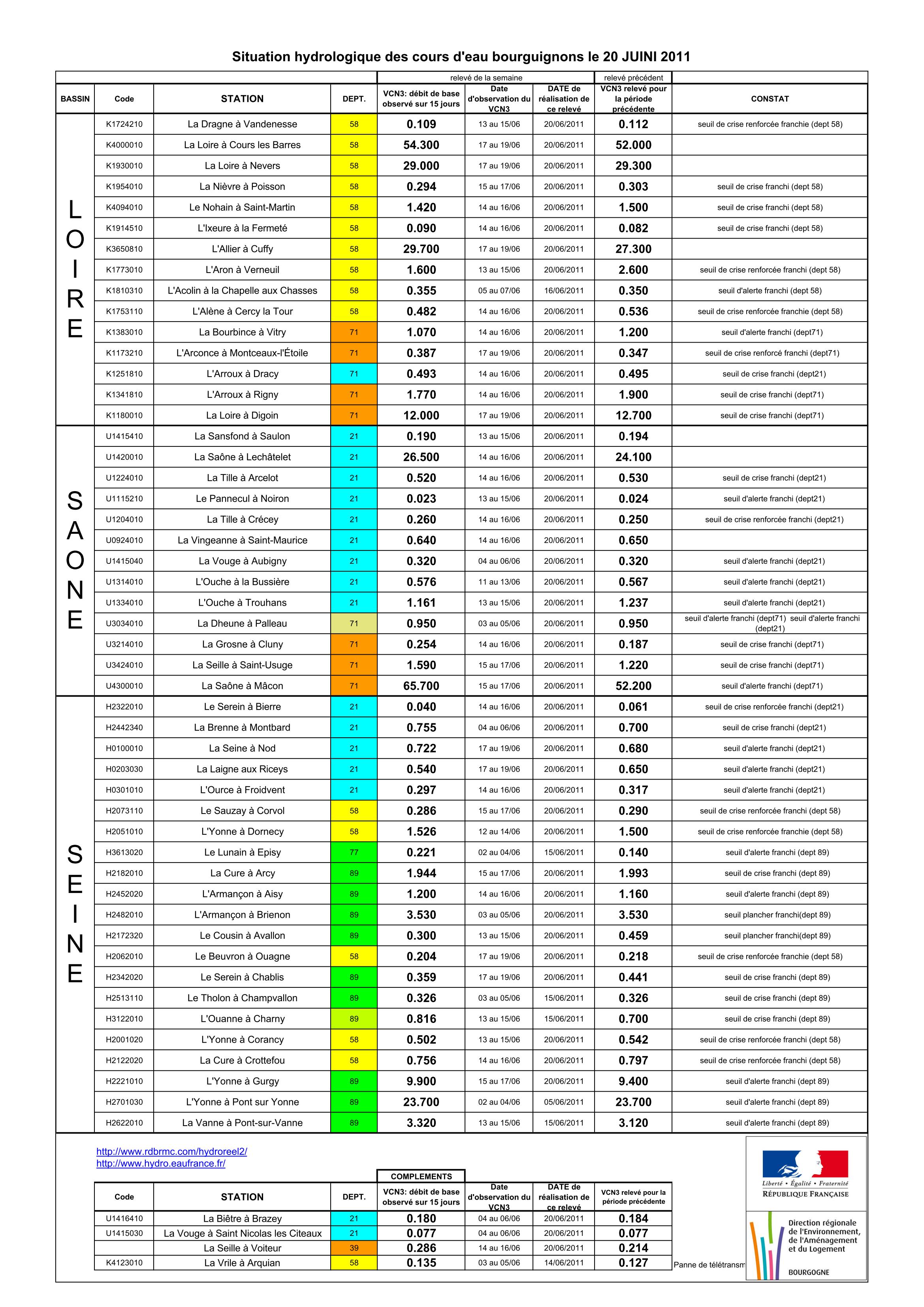 Bulletin Sécheresse BFC/Ouest 20-06-2011
