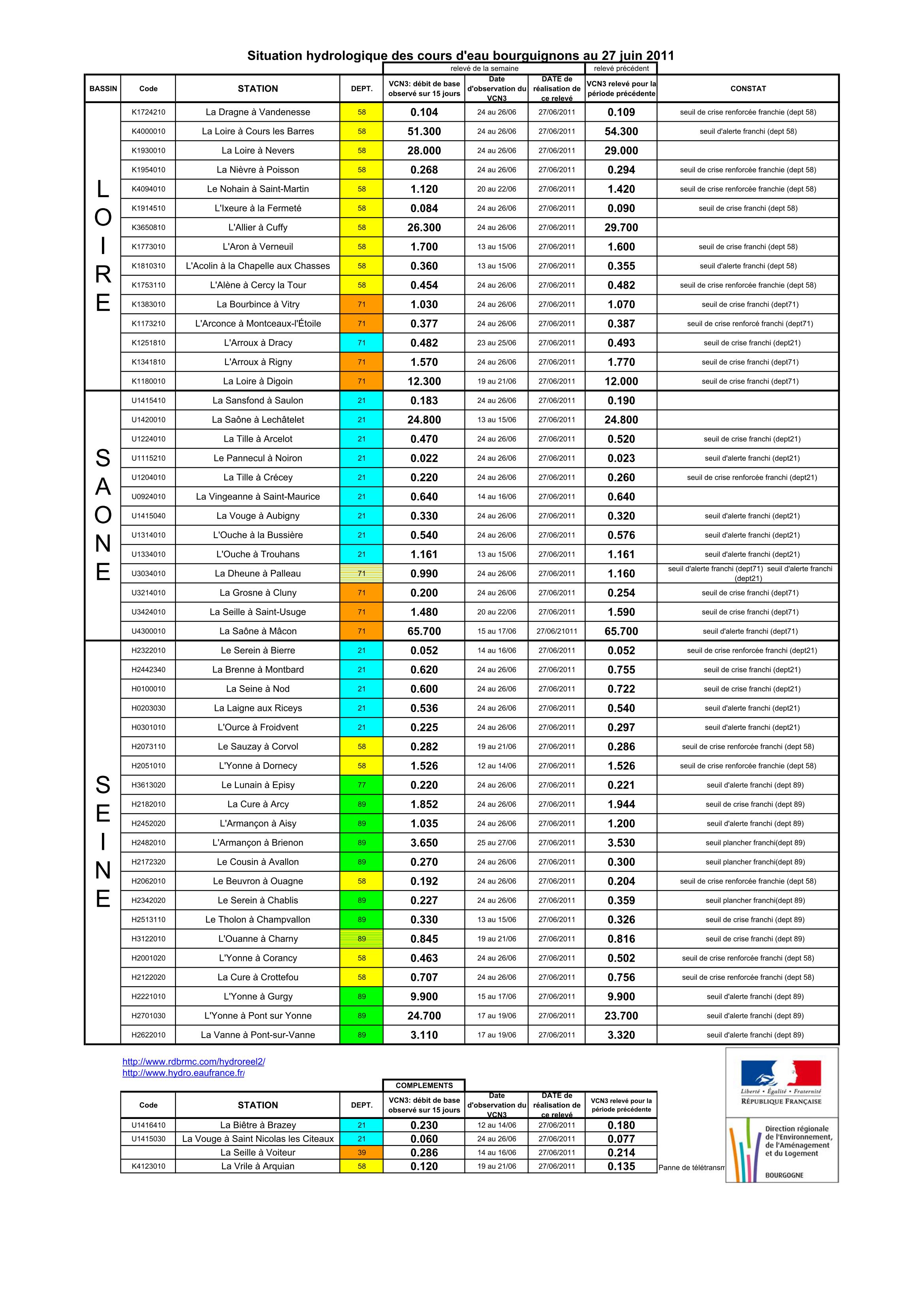 Bulletin Sécheresse BFC/Ouest 27-06-2011