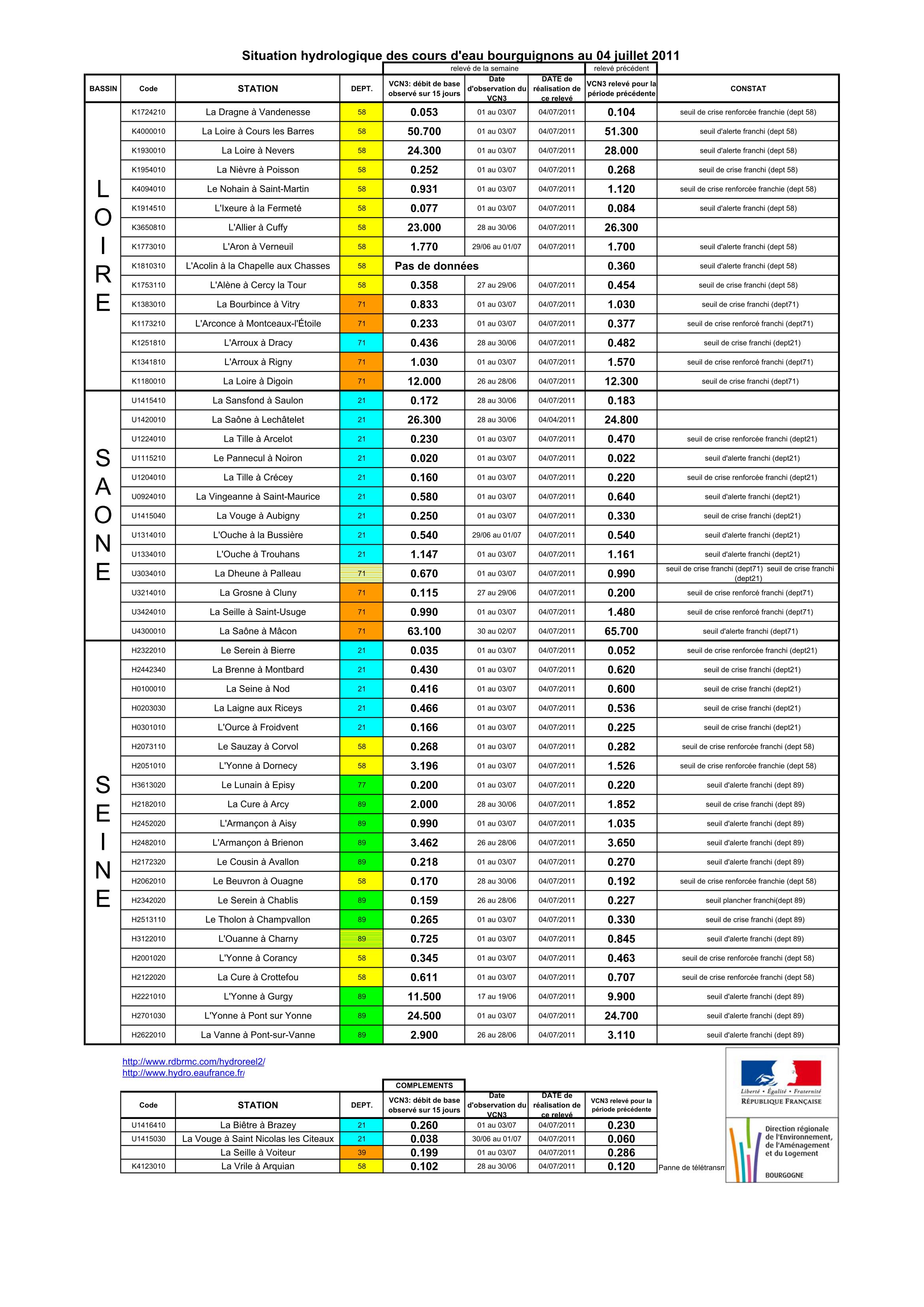 Bulletin Sécheresse BFC/Ouest 04-07-2011
