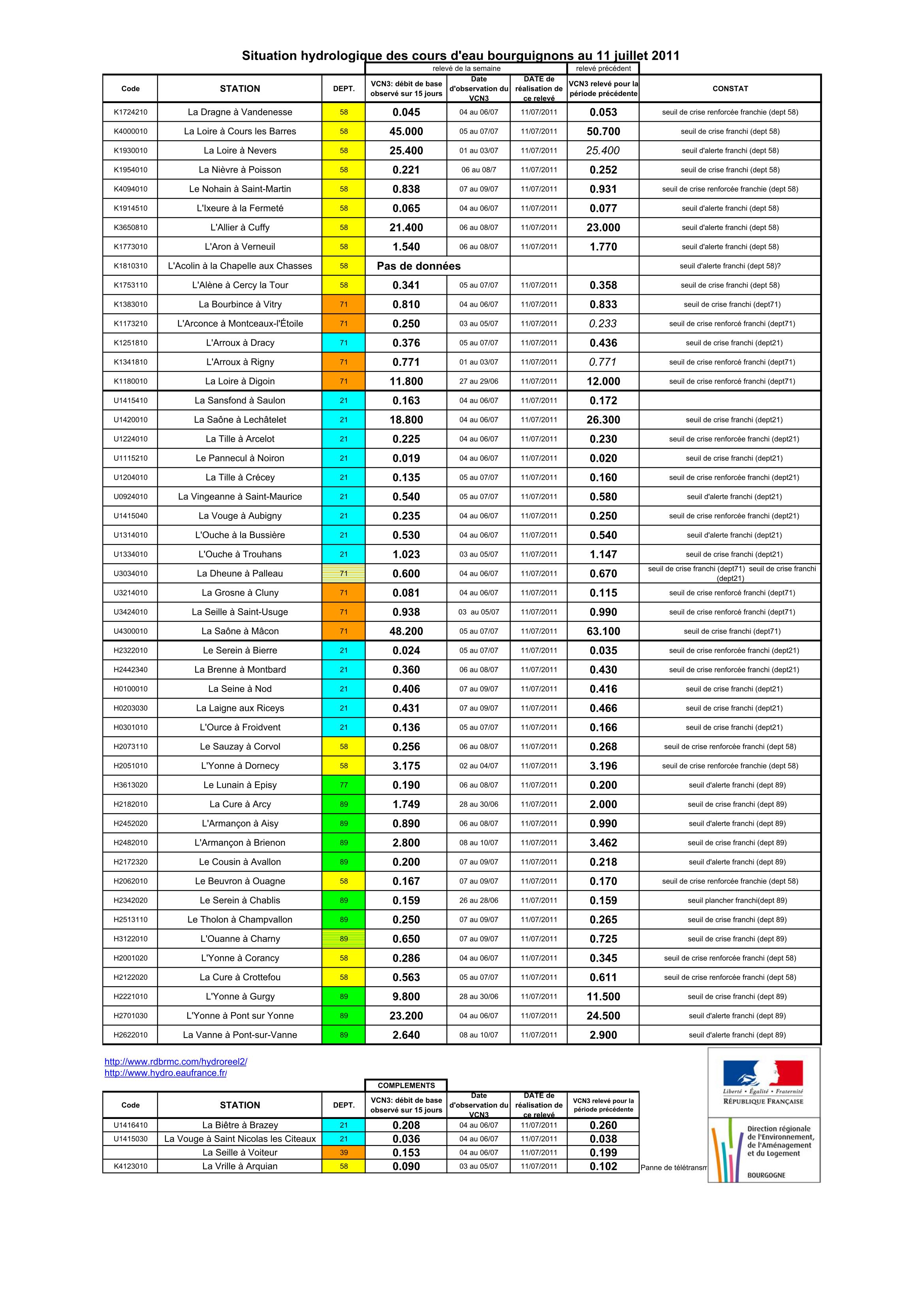 Bulletin Sécheresse BFC/Ouest 11-07-2011
