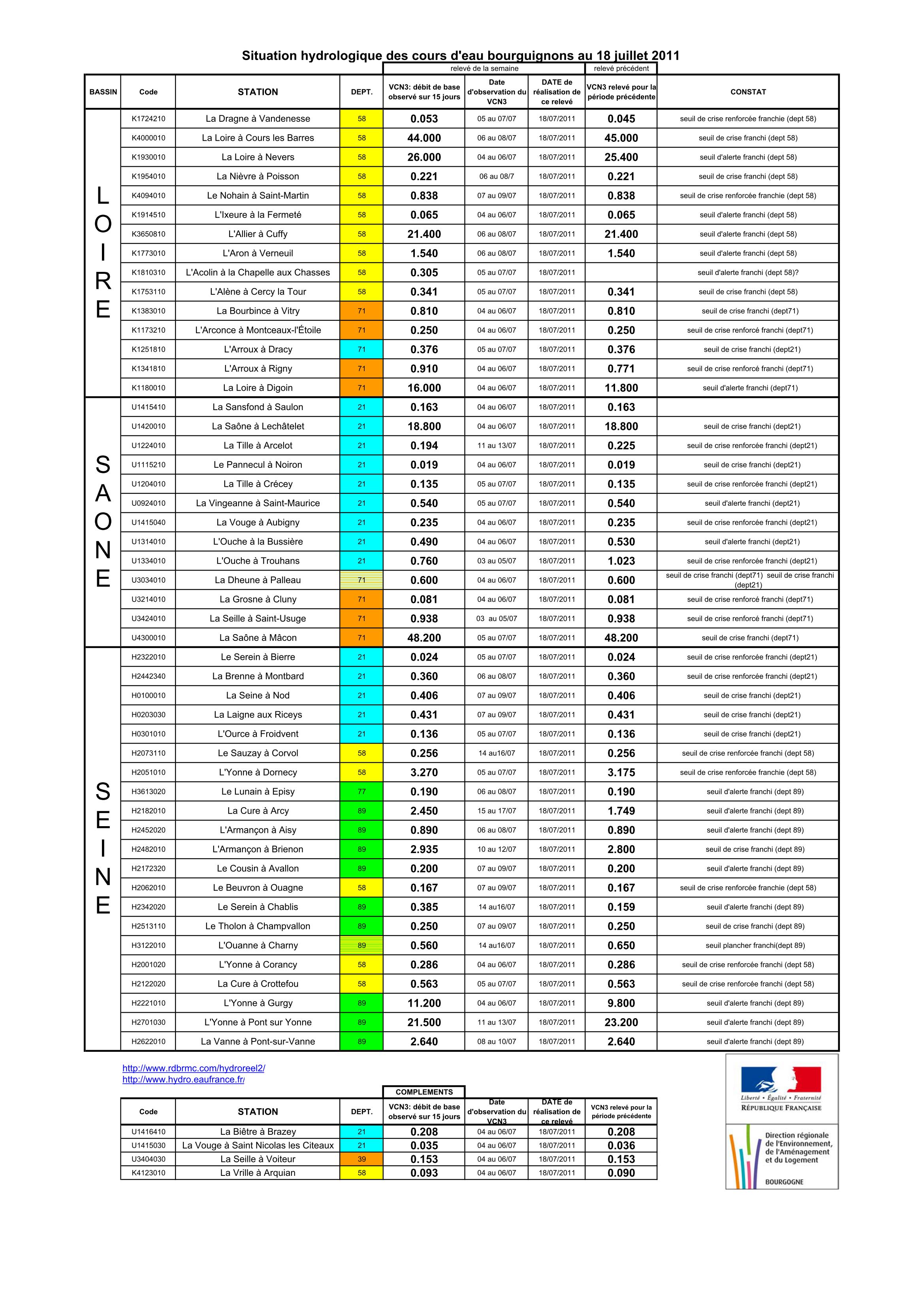 Bulletin Sécheresse BFC/Ouest 18-07-2011