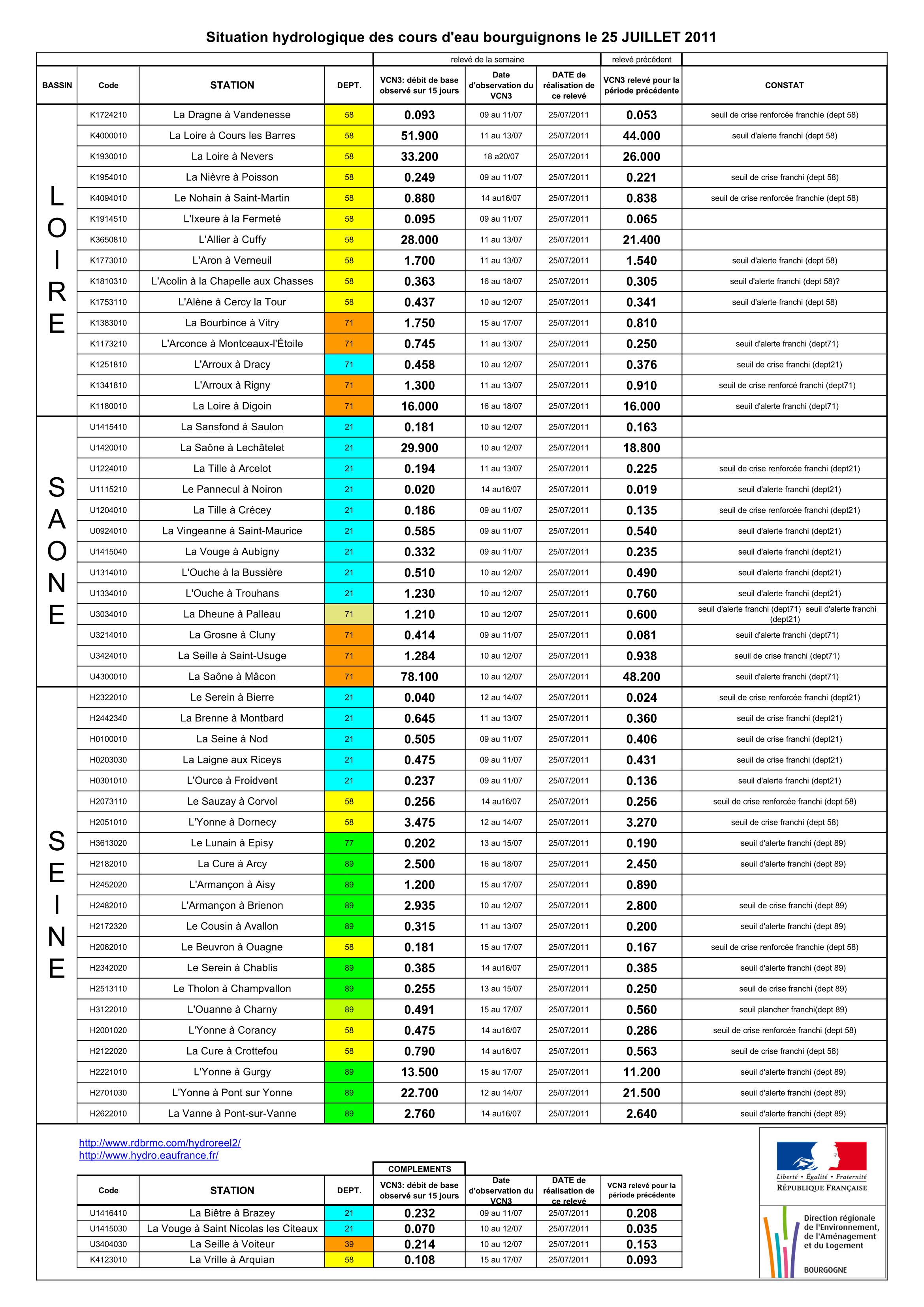 Bulletin Sécheresse BFC/Ouest 25-07-2011
