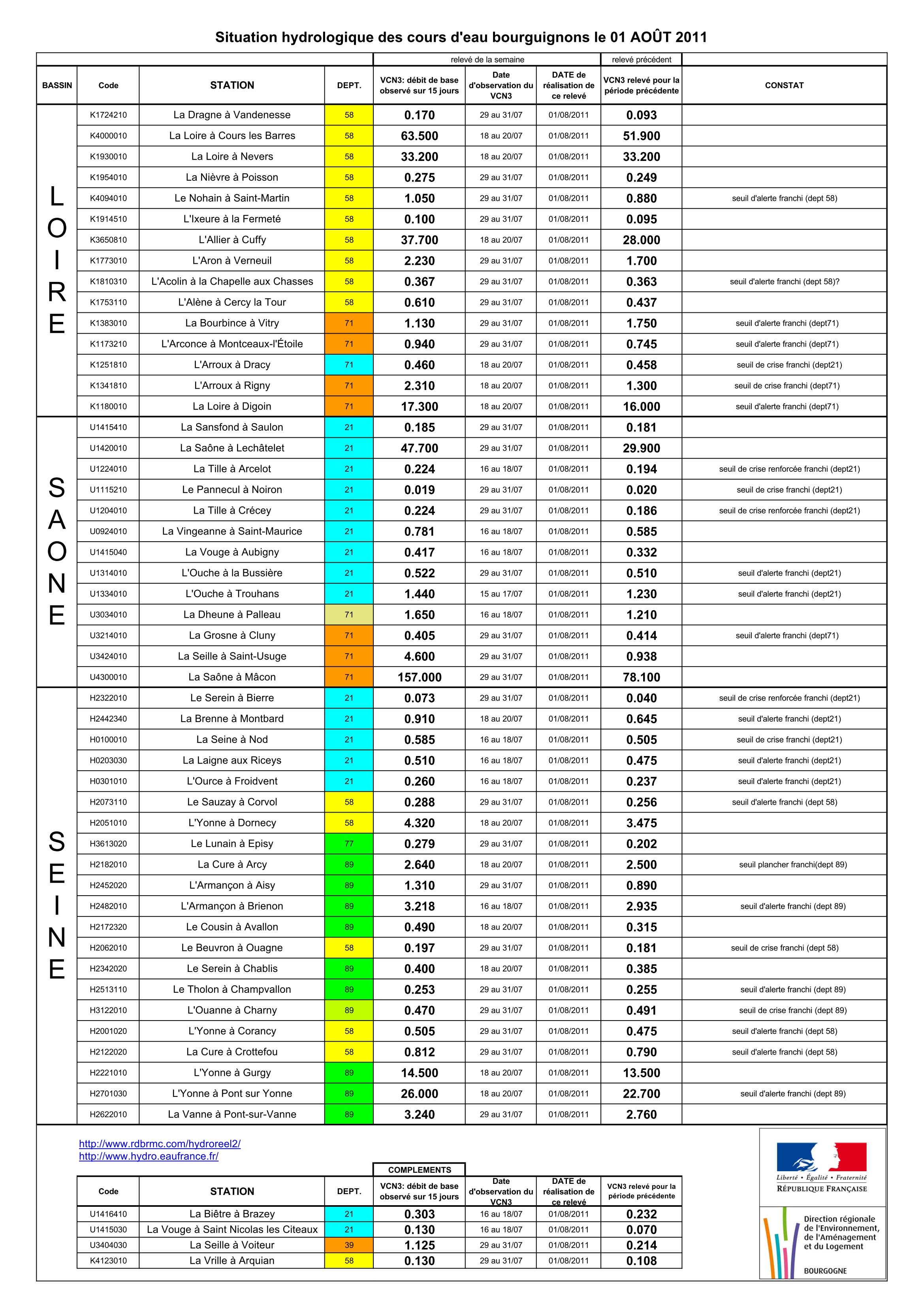 Bulletin Sécheresse BFC/Ouest 01-08-2011